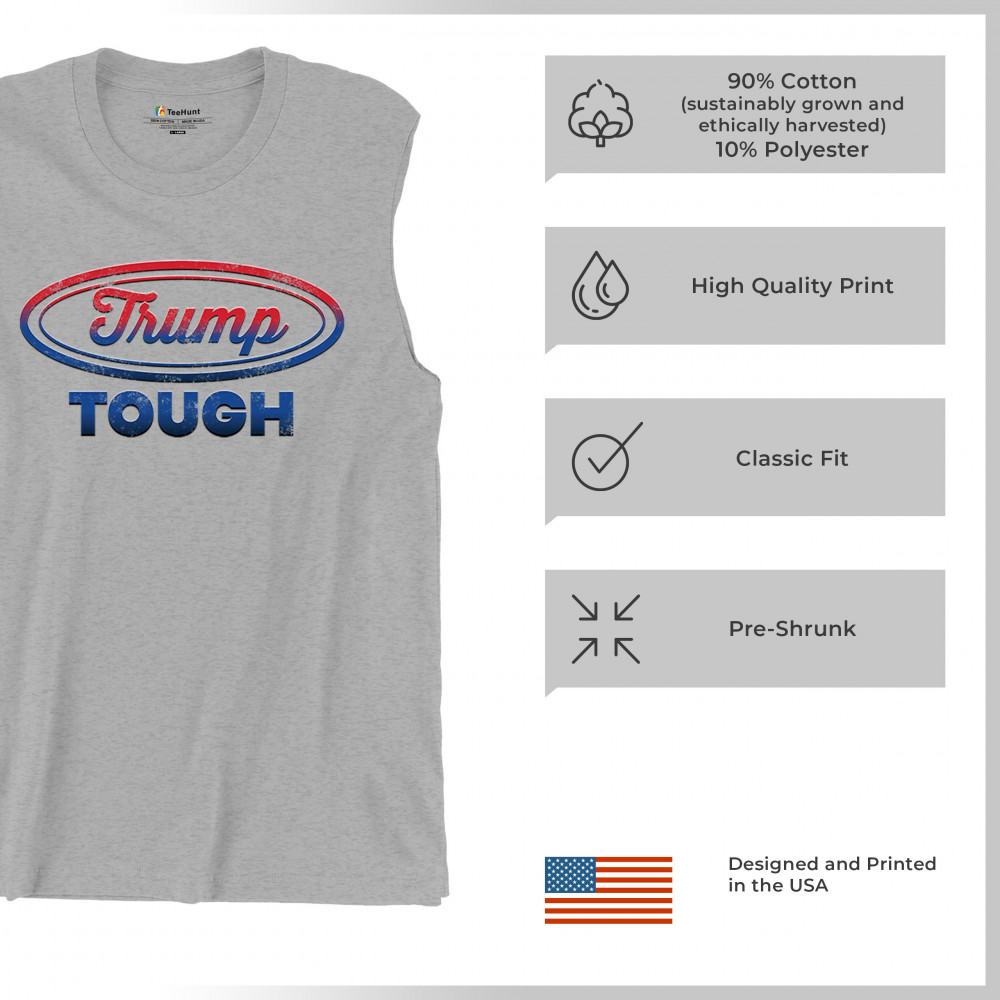 Embrace the "Trump Tough" spirit—show your support for conservative values, America first, and the American flag. Perfect for rallies or daily wear.