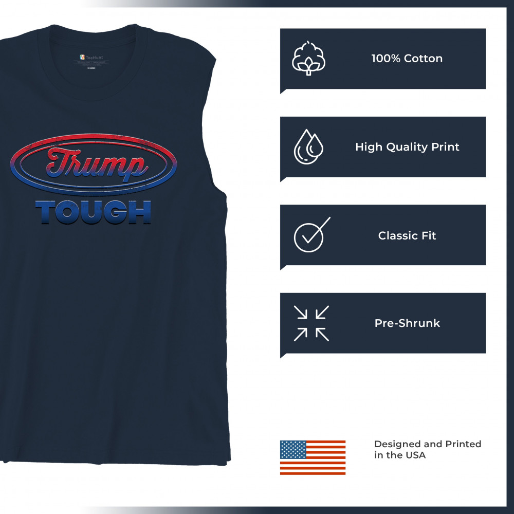 Embrace the "Trump Tough" spirit—show your support for conservative values, America first, and the American flag. Perfect for rallies or daily wear.