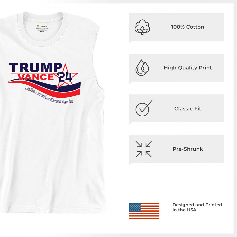 Show your support for Trump-Vance 2024 with this bold design featuring "Make America Great Again." Perfect for rallies and patriotic events.