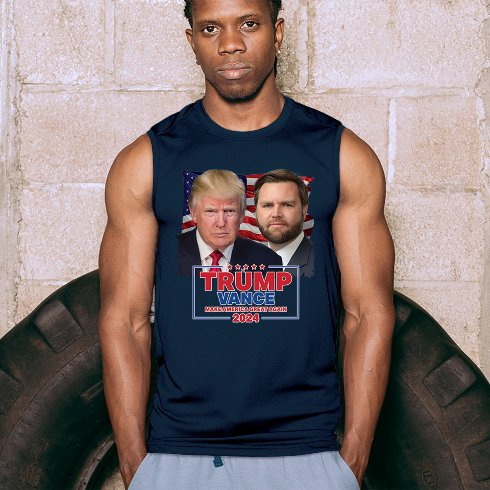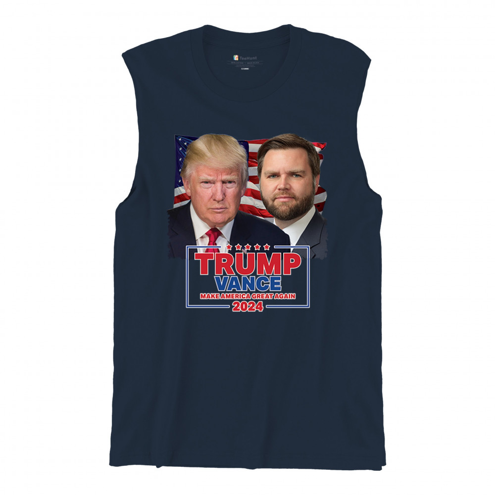 Show your support for Trump-Vance 2024 with this bold design featuring Trump and Vance against the American flag. Perfect for rallies and political events.