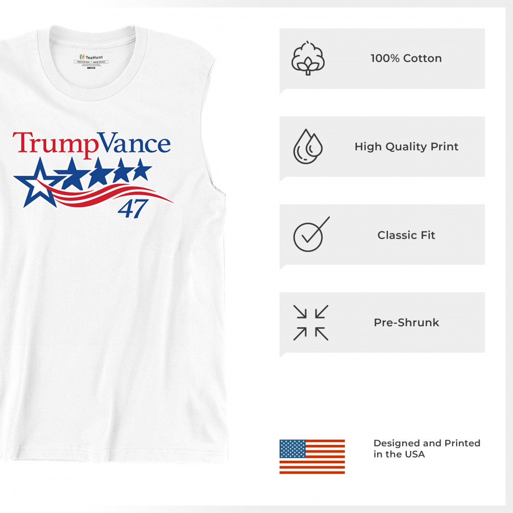Patriotic "Trump Vance 47" design celebrating America First, conservative values, and the Red Wave, supporting Donald J. Trump as the 47th President.
