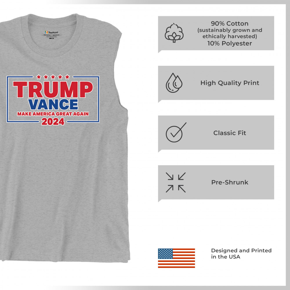 Show your support for Trump-Vance 2024 with this patriotic design featuring the American flag and bold slogan. Perfect for rallies and conservative events.