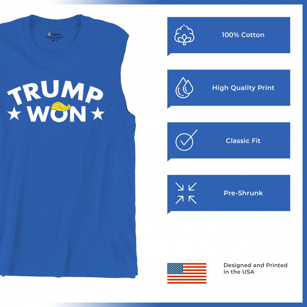 The "Trump Won" design boldly represents the spirit of victory, resilience, and unwavering support for America First principles. Ideal for patriots, Republicans, and supporters of Donald J. Trump, this statement graphic captures the momentum of the Red Wave and the people's mandate. Make your voice heard and show your dedication to the fight for freedom with this iconic design.