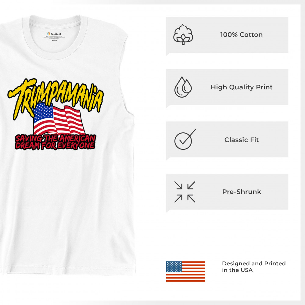 Celebrate the American dream with this powerful "Trumpamania" design. Perfect for rallies and beyond, this design captures the essence of conservatism and the fight for freedom. It’s a testament to the unstoppable spirit of those who trust in God and reject government overreach. With an American flag proudly displayed, this design aligns with the values of victory, rebellion, and unwavering support for Trump.
