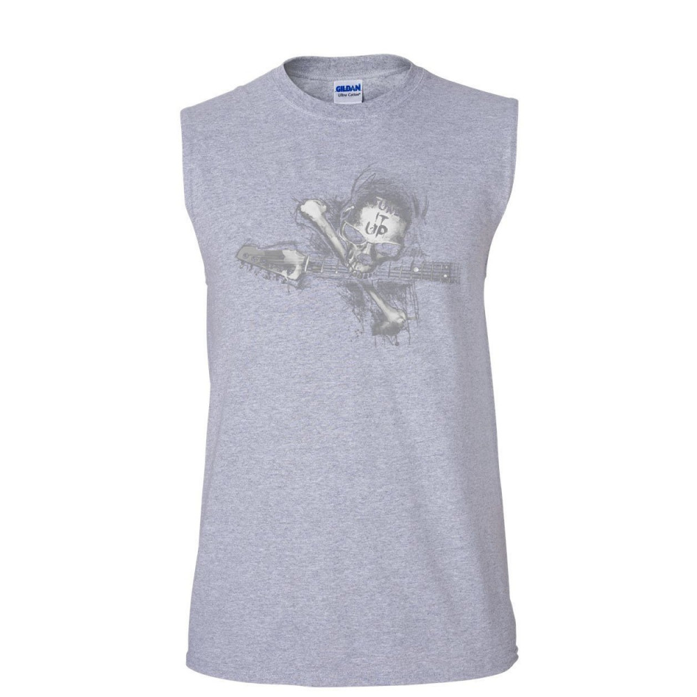 TUNE IT UP MUSIC muscle shirt skulls guitar death metal hard rock sleeveless gray