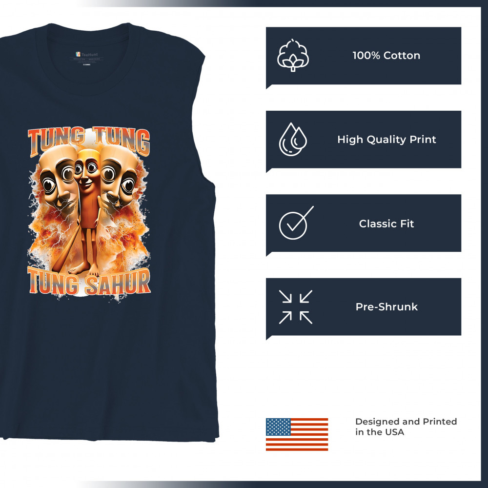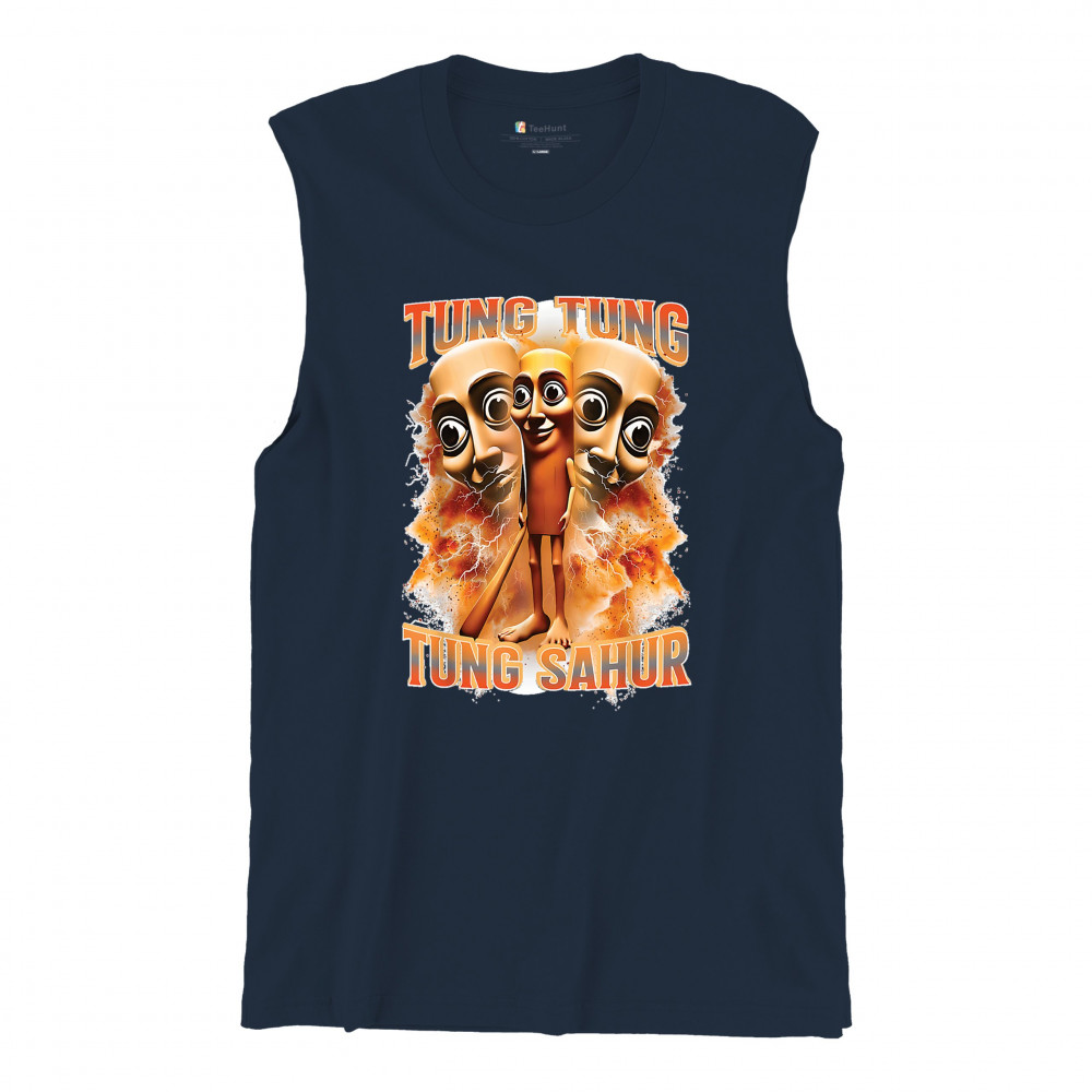 Brace yourself for pure meme insanity with the Tung Tung Tung Sahur shirt—a cursed-core fever dream built from TikTok chaos and Gen Z humor. This design blends internet meme culture, ironic fashion, brainrot visuals, and Gen Alpha absurdity. Perfect for those who wear memes, laugh at chaos, and live for viral trends.