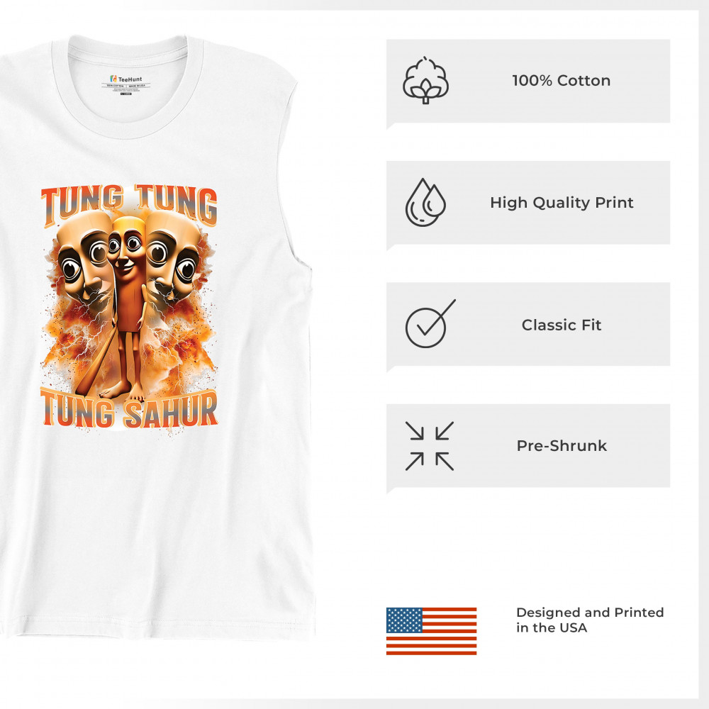 Brace yourself for pure meme insanity with the Tung Tung Tung Sahur shirt—a cursed-core fever dream built from TikTok chaos and Gen Z humor. This design blends internet meme culture, ironic fashion, brainrot visuals, and Gen Alpha absurdity. Perfect for those who wear memes, laugh at chaos, and live for viral trends.