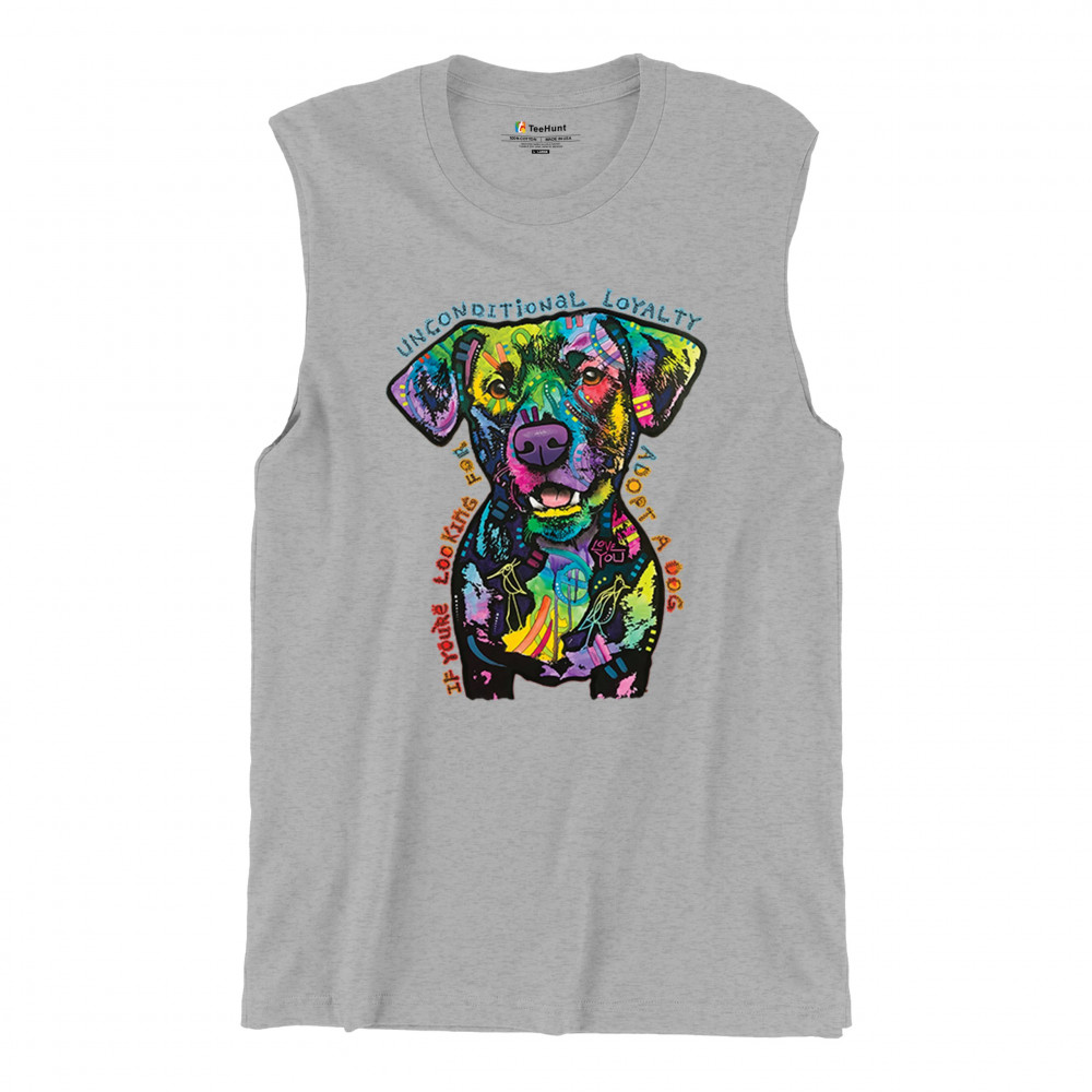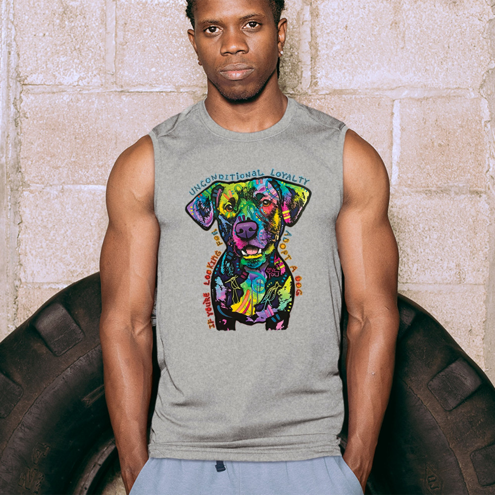 UNCONDITIONAL LOYALTY muscle shirt adopt a dog dean russo pets men's gray