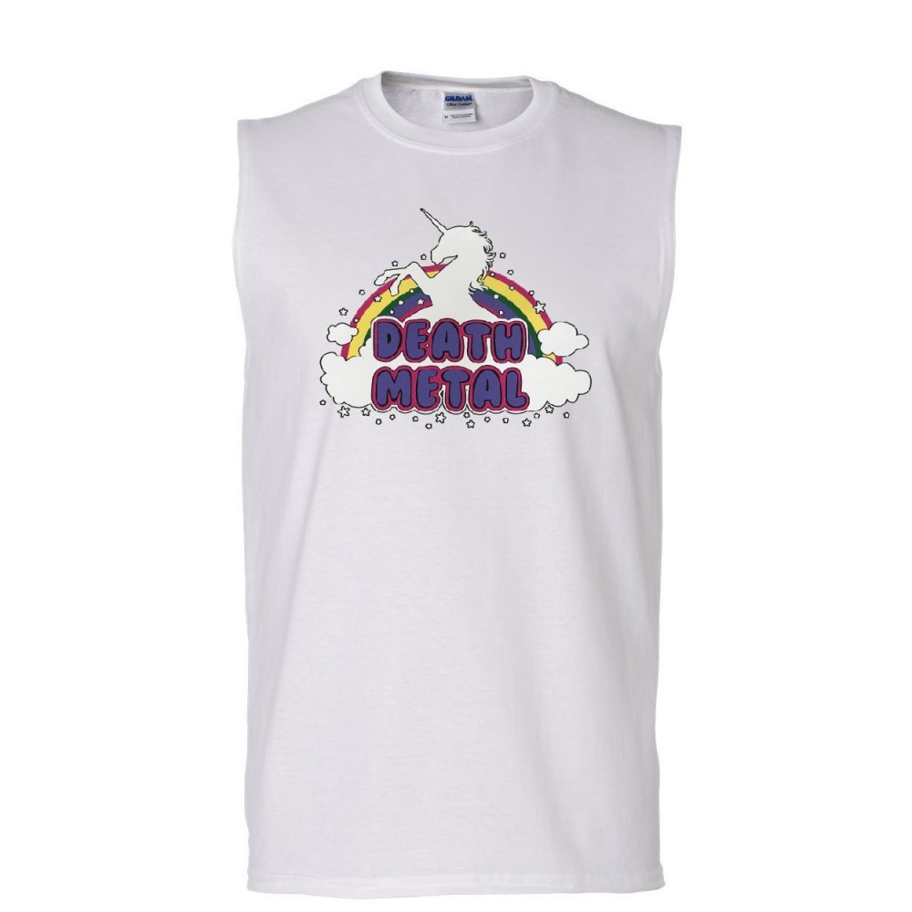 UNICORN DEATH METAL muscle shirt rainbow hilarious cute heavy music sleeveless white