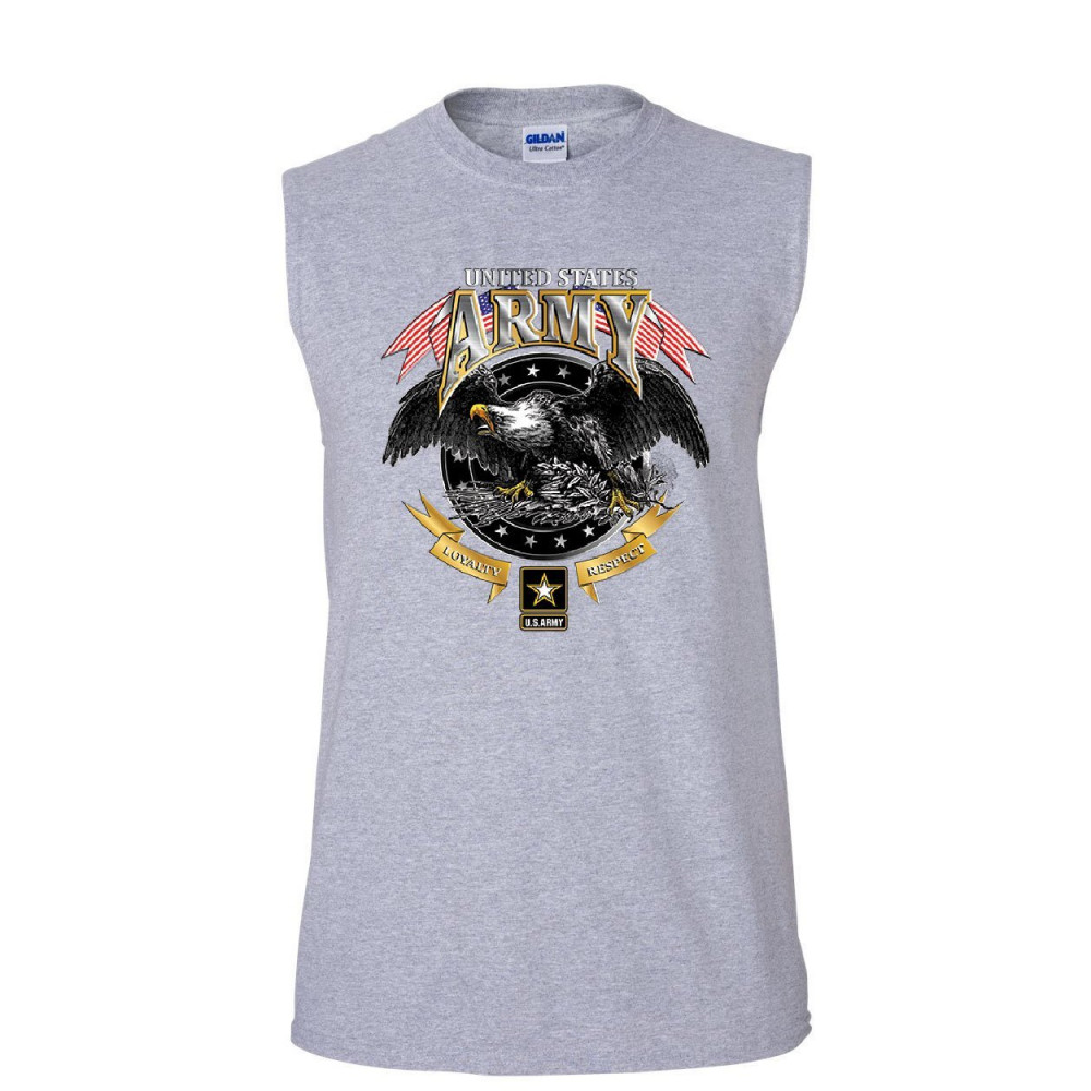 UNITED STATES ARMY muscle shirt loyalty respect bald eagle pow mia sleeveless gray