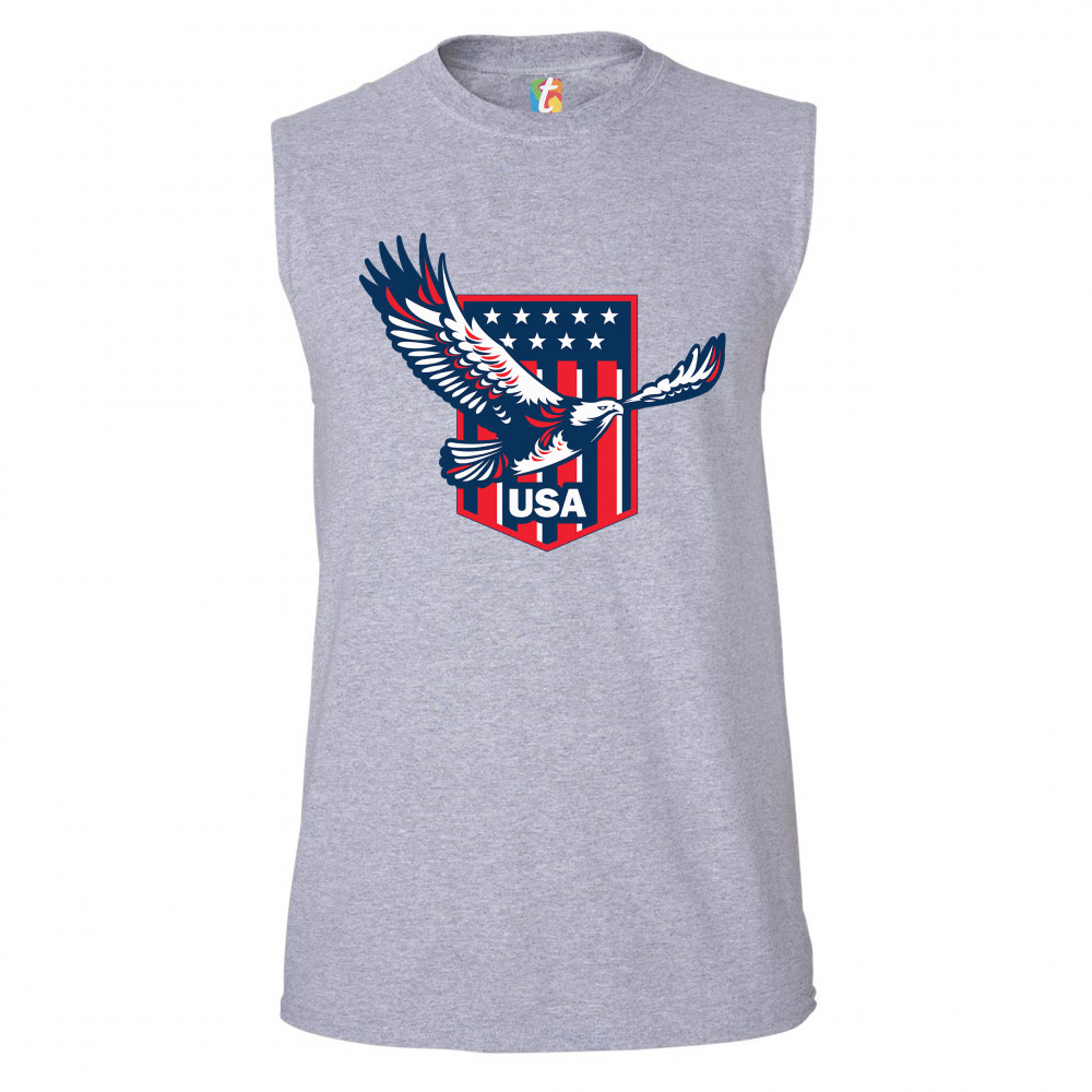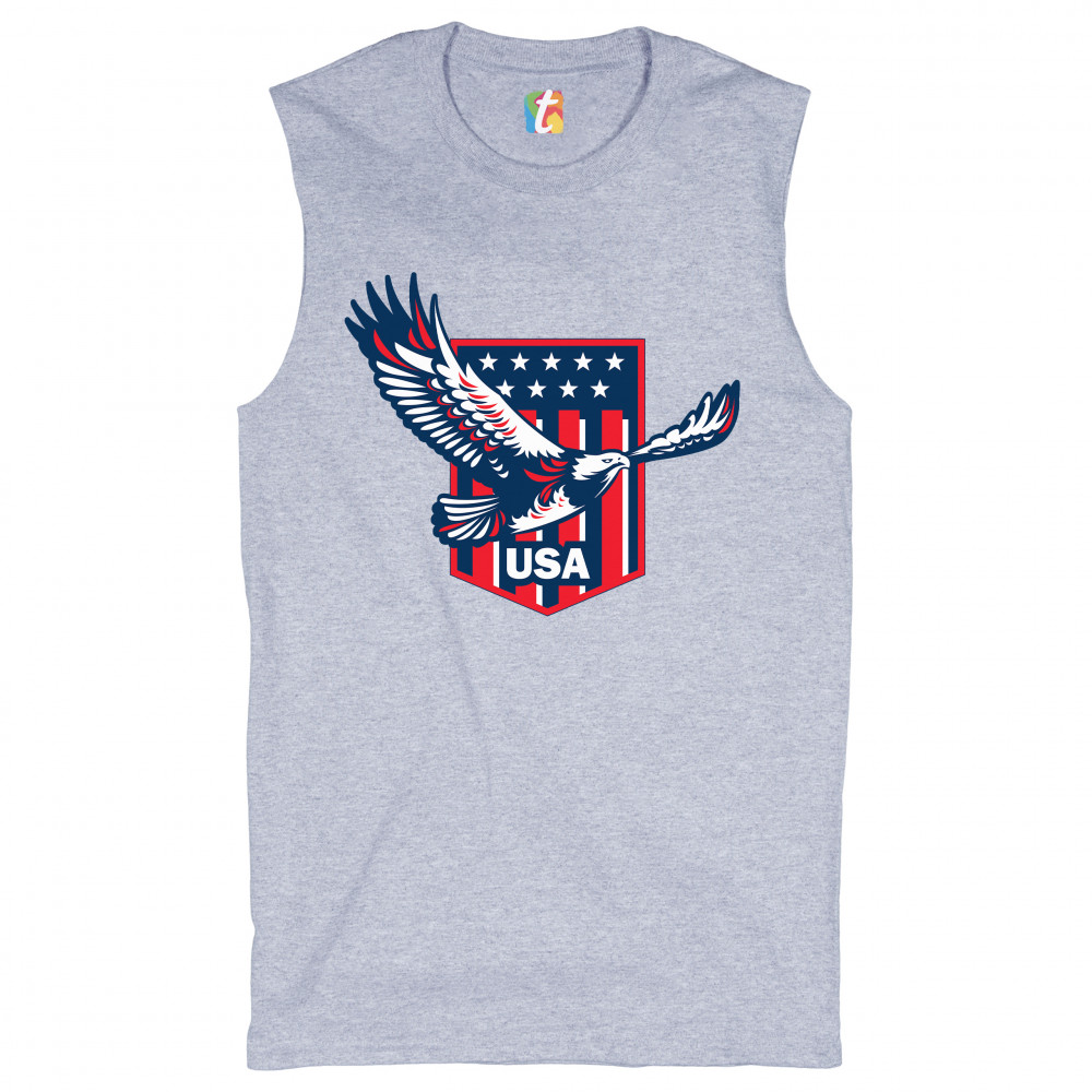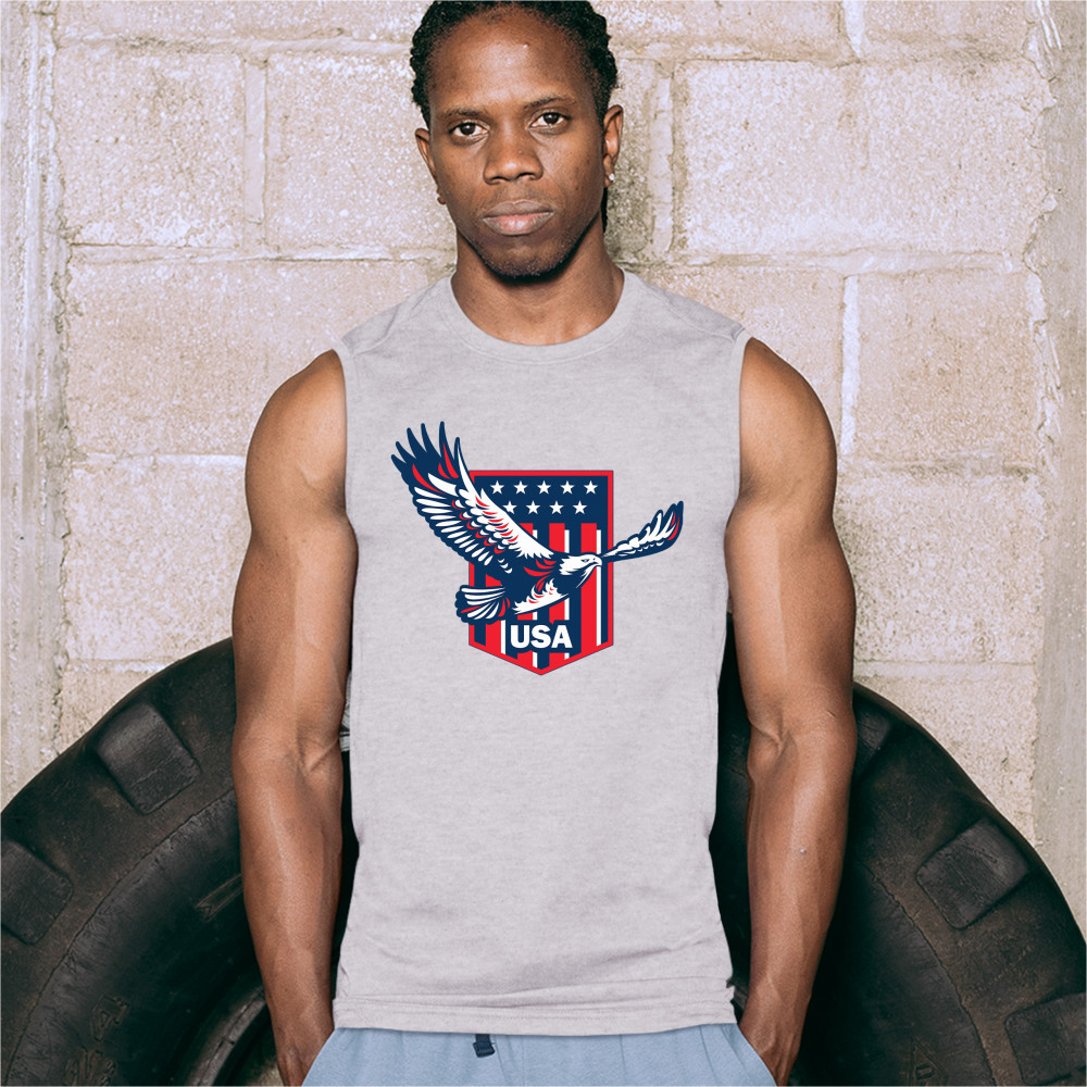 USA BALD EAGLE muscle shirt stars and stripes shield 4th of july men's gray