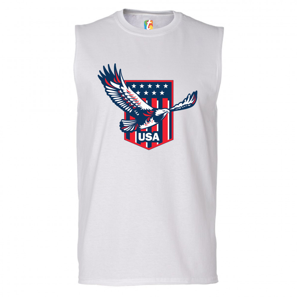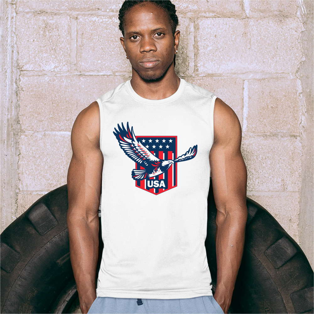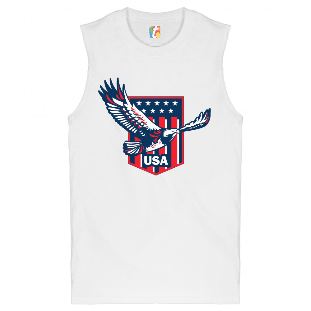 USA BALD EAGLE muscle shirt stars and stripes shield 4th of july men's white