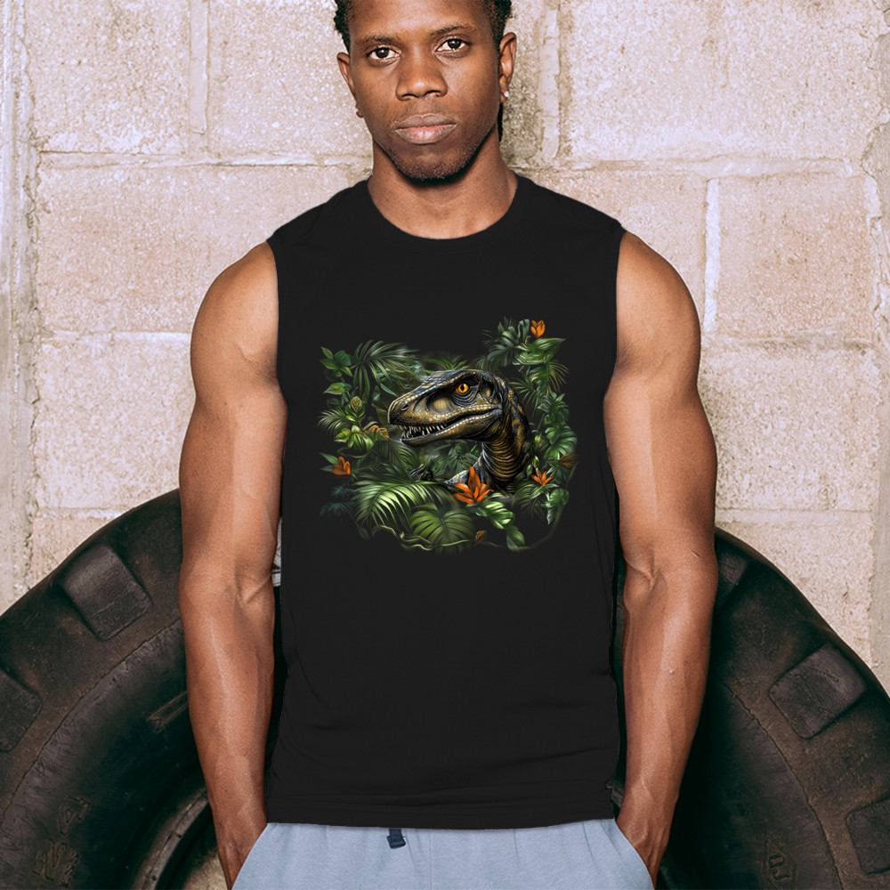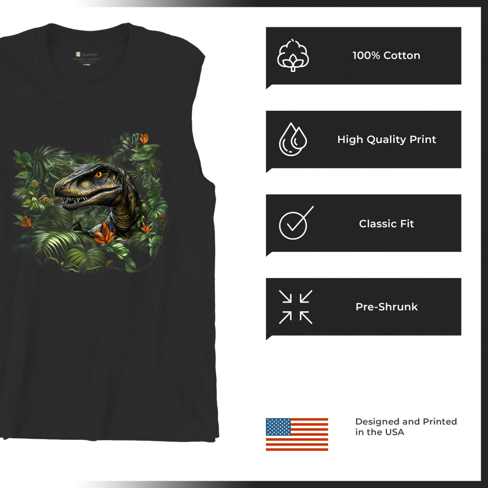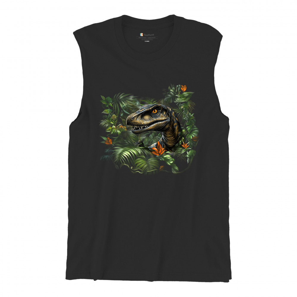 Step into the wild with this striking jungle raptor design. A highly detailed velociraptor peeks from vivid tropical foliage and flowers, perfect for dinosaur lovers, fossil fans, and ancient creature enthusiasts. Whether for Jurassic adventures, museum trips, or themed events, this design unleashes untamed prehistoric energy.