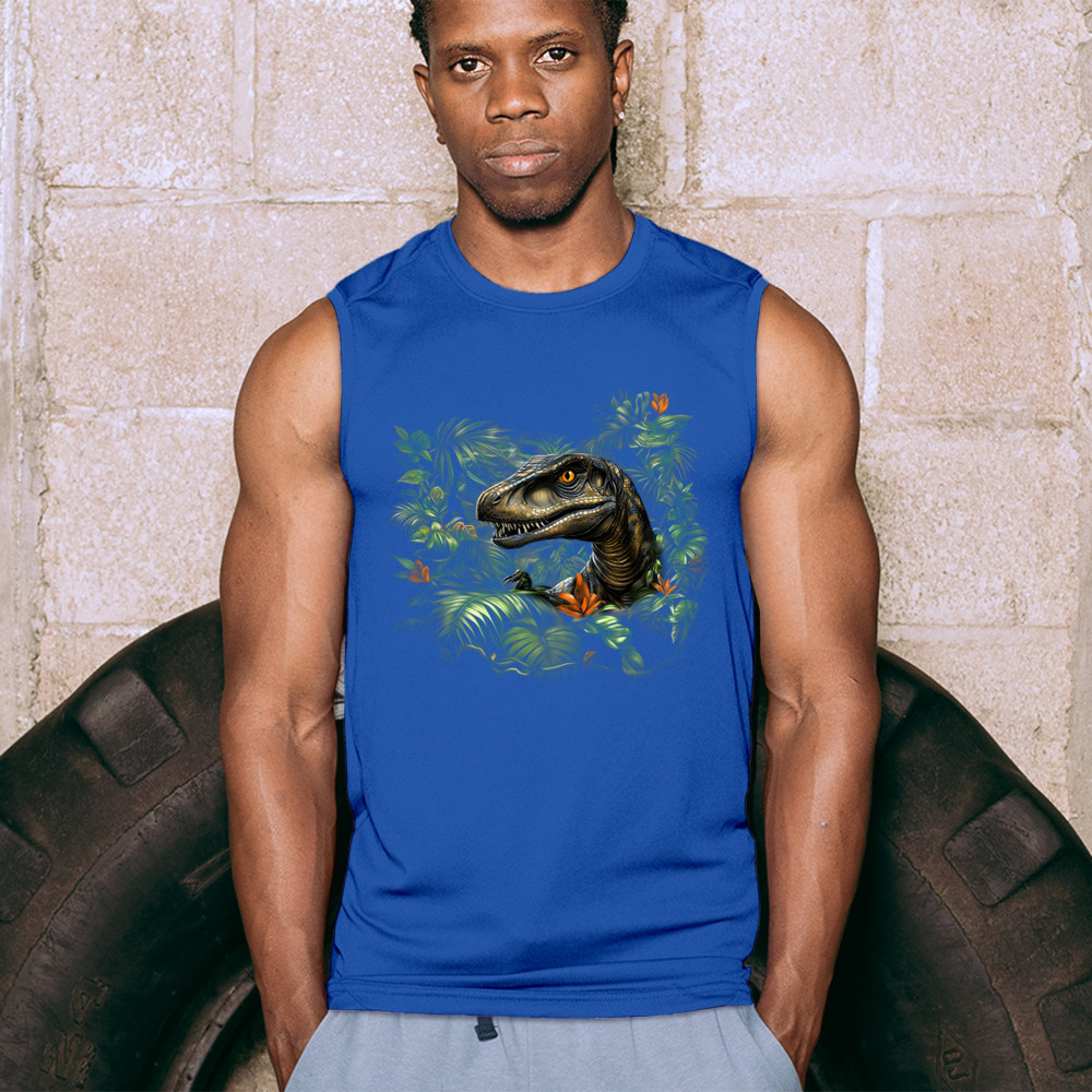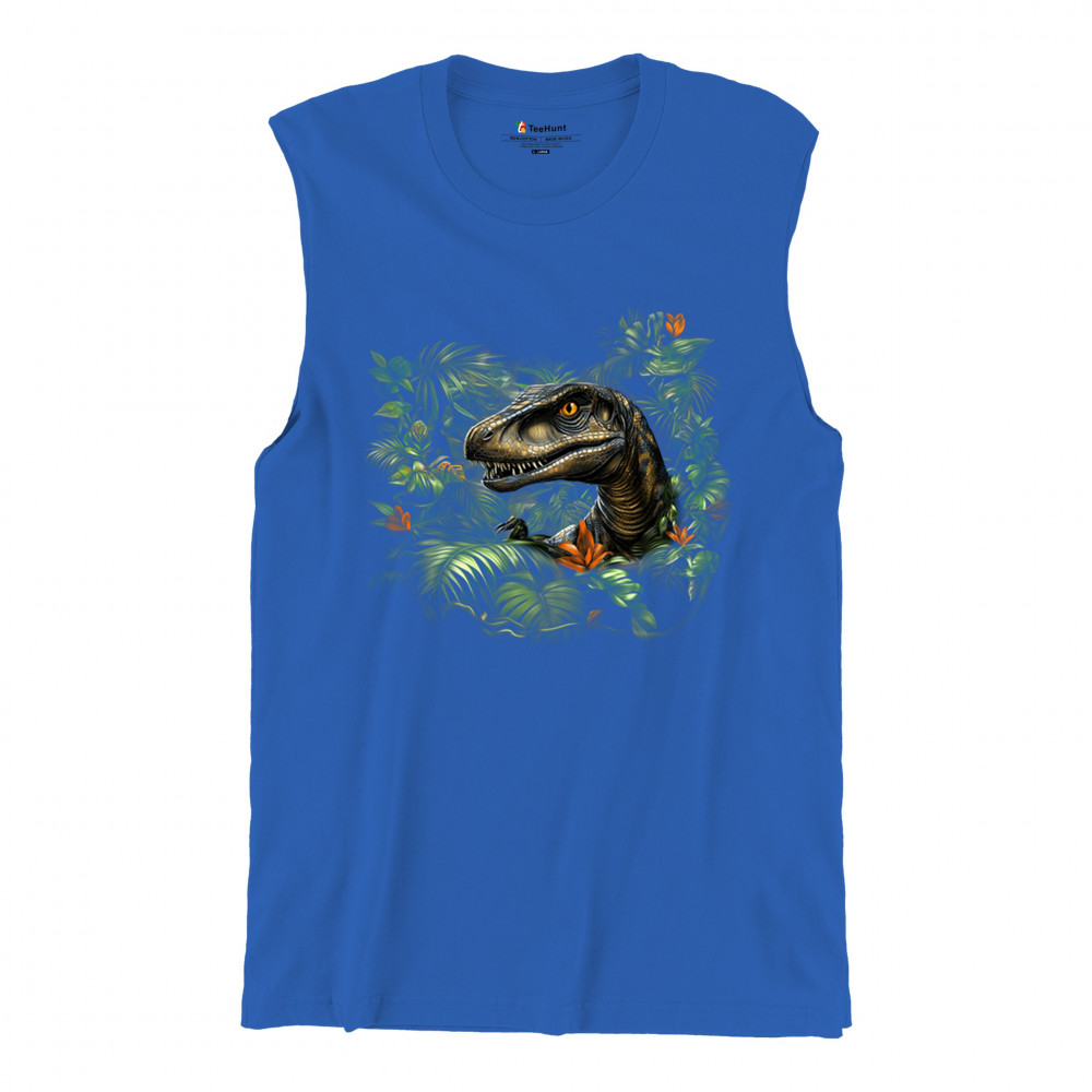 Step into the wild with this striking jungle raptor design. A highly detailed velociraptor peeks from vivid tropical foliage and flowers, perfect for dinosaur lovers, fossil fans, and ancient creature enthusiasts. Whether for Jurassic adventures, museum trips, or themed events, this design unleashes untamed prehistoric energy.