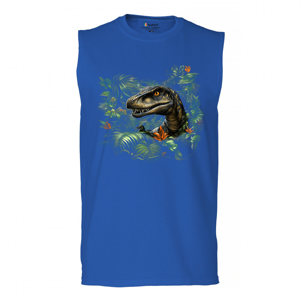 Realistic velociraptor in jungle foliage. Perfect for dinosaur lovers, fossil fans, Jurassic exhibits, and prehistoric adventure style.