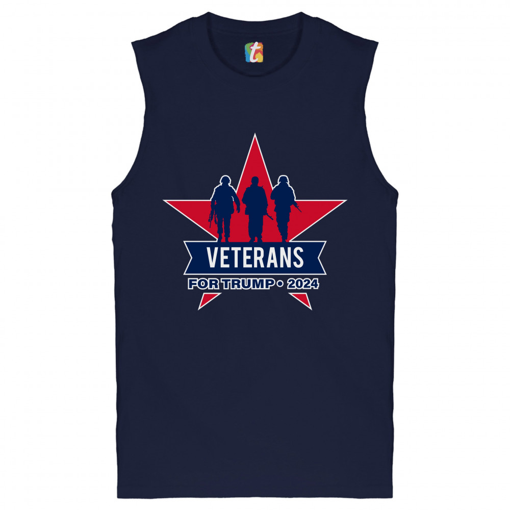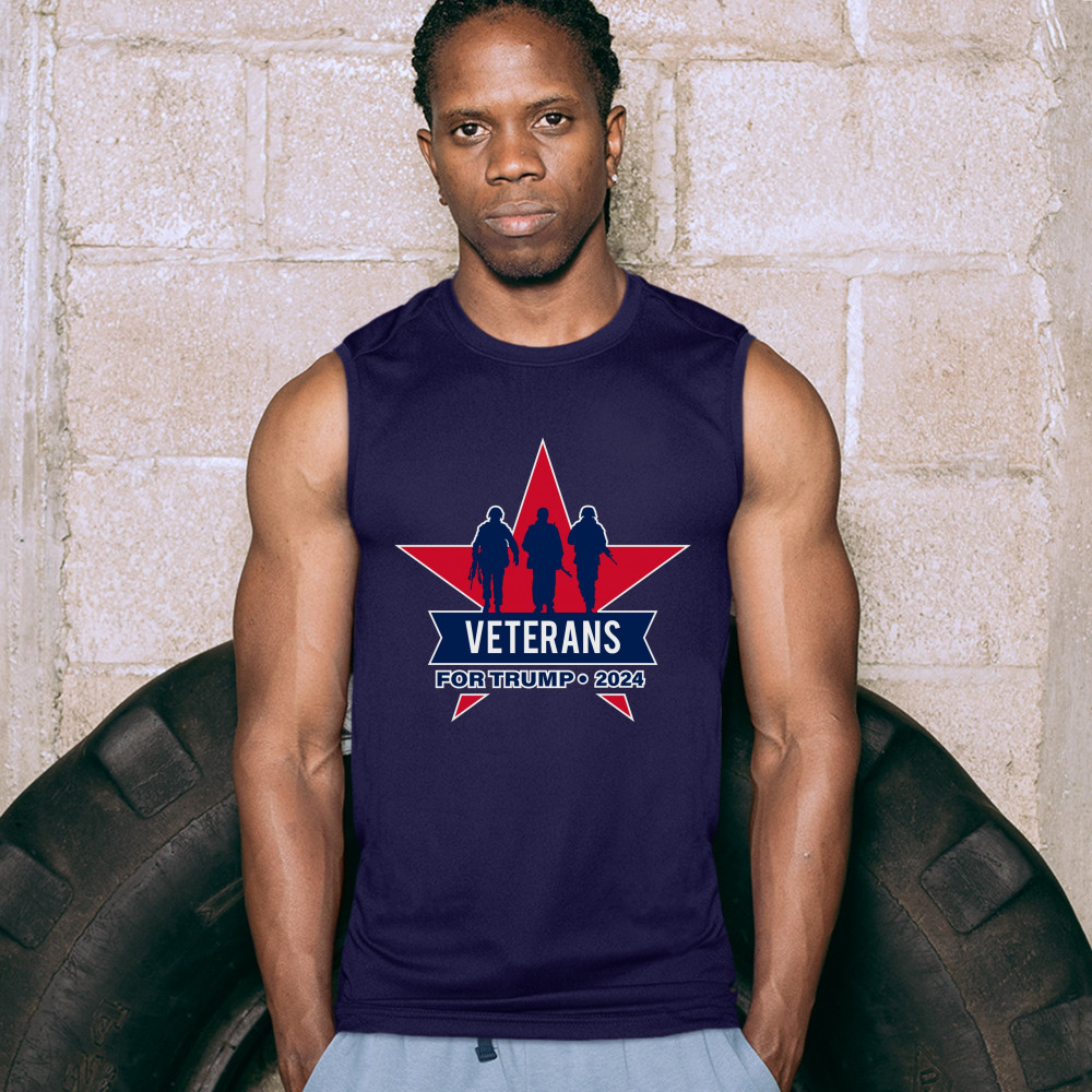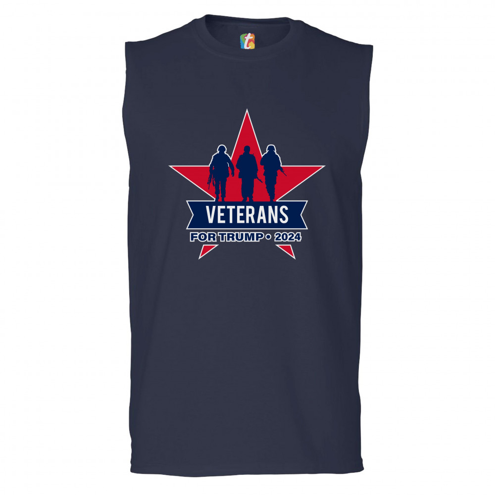 VETERANS FOR TRUMP 2024 muscle shirt keep america great maga military men's navy blue