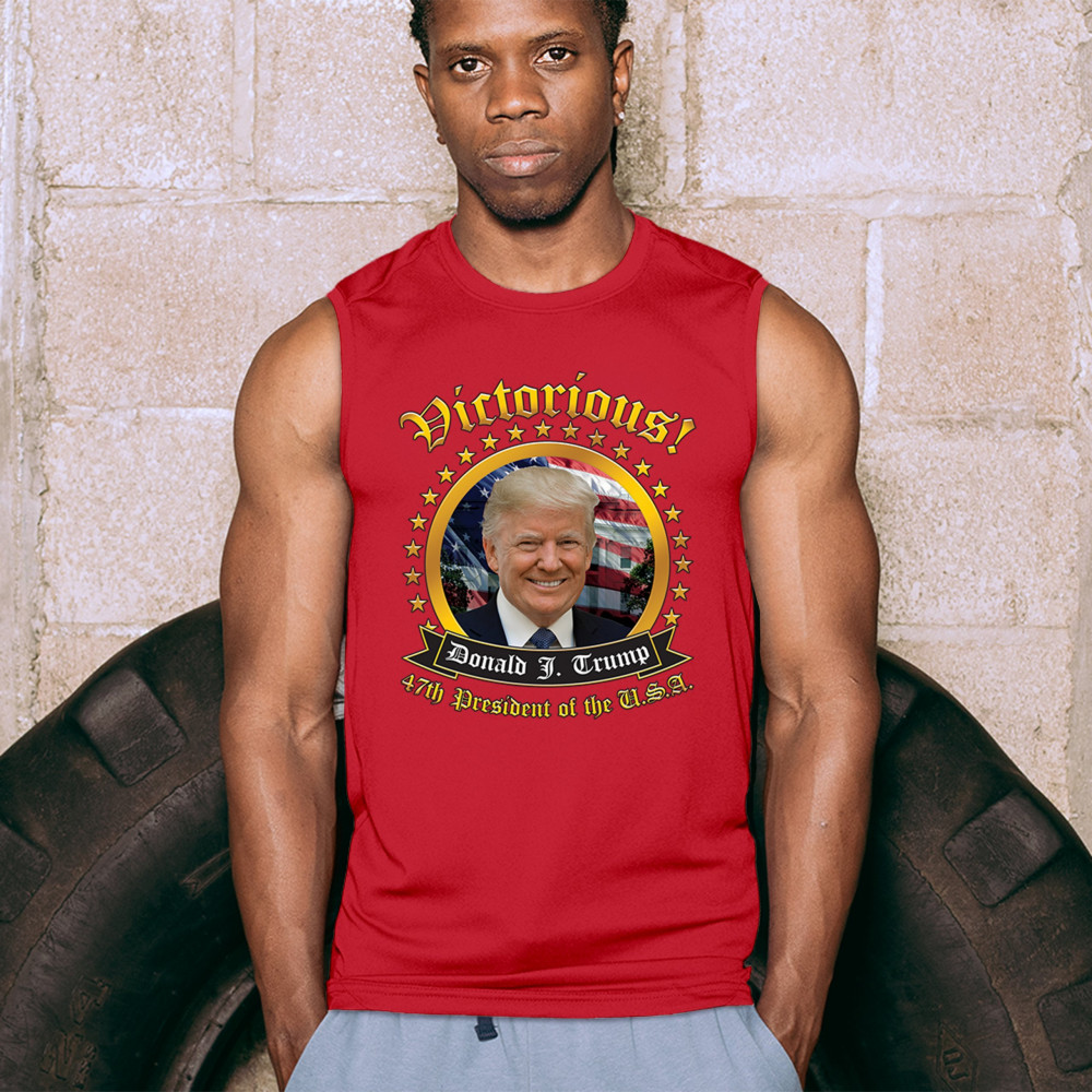 Showcase your support for Trump as the 47th President with this "Victorious" design. Perfect for patriots, America First advocates, and Red Wave supporters.