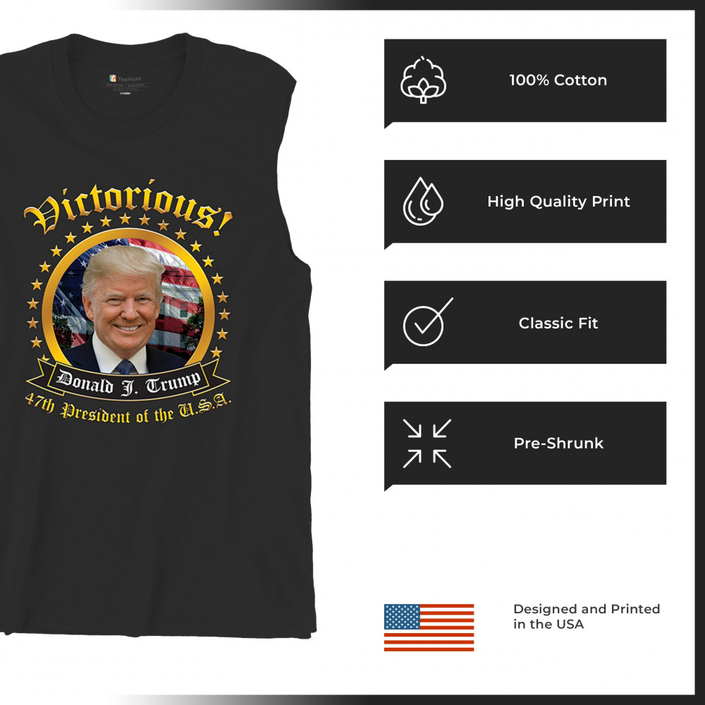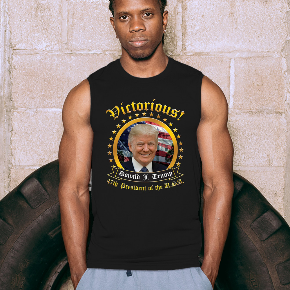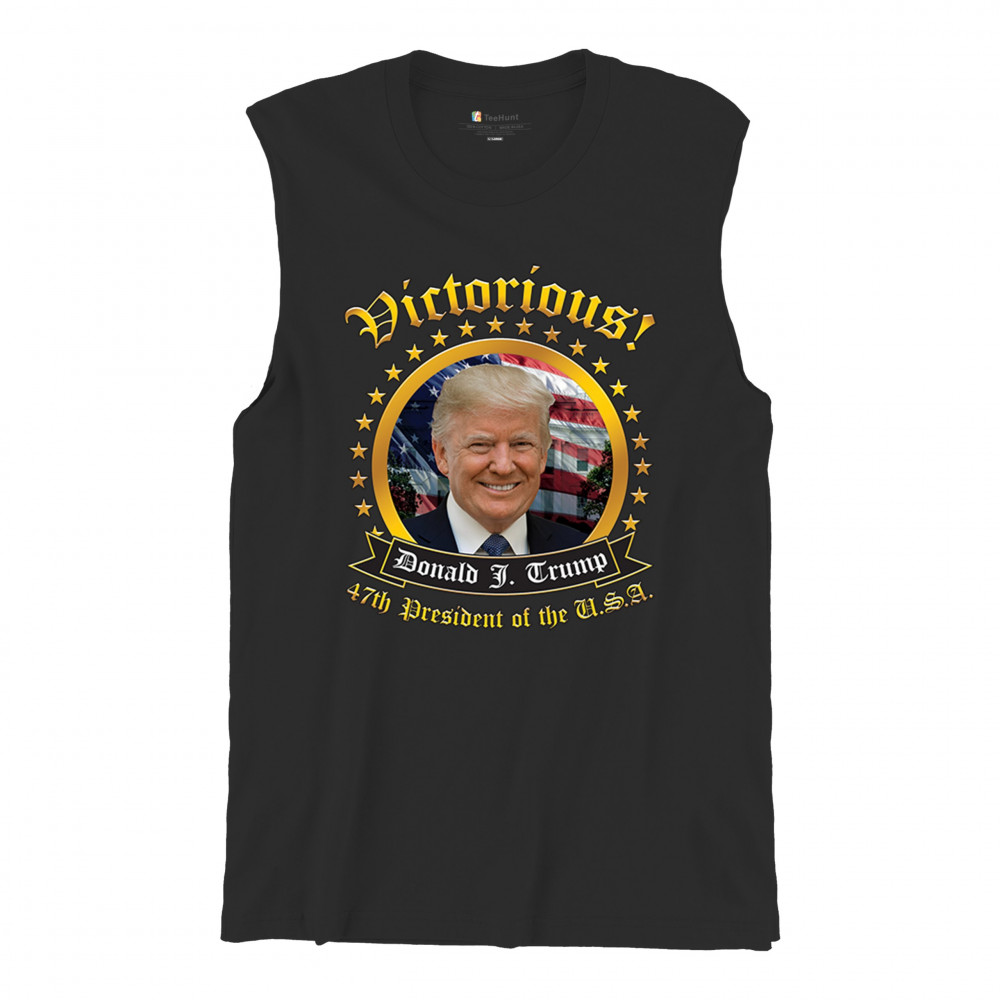 Showcase your support for Trump as the 47th President with this "Victorious" design. Perfect for patriots, America First advocates, and Red Wave supporters.
