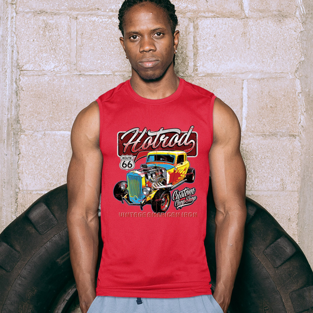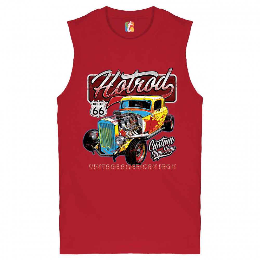 VINTAGE AMERICAN IRON muscle shirt hot rod route 66 retro racing men's red