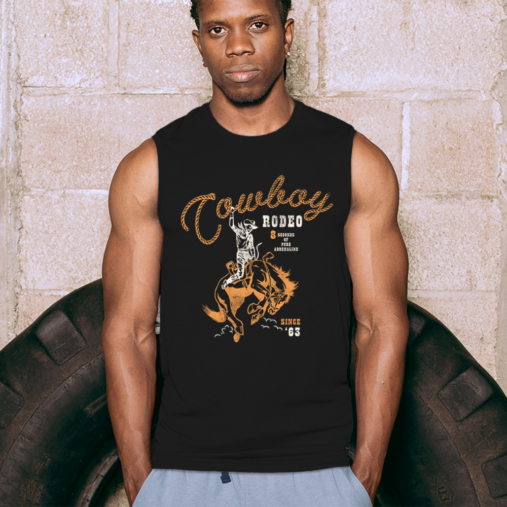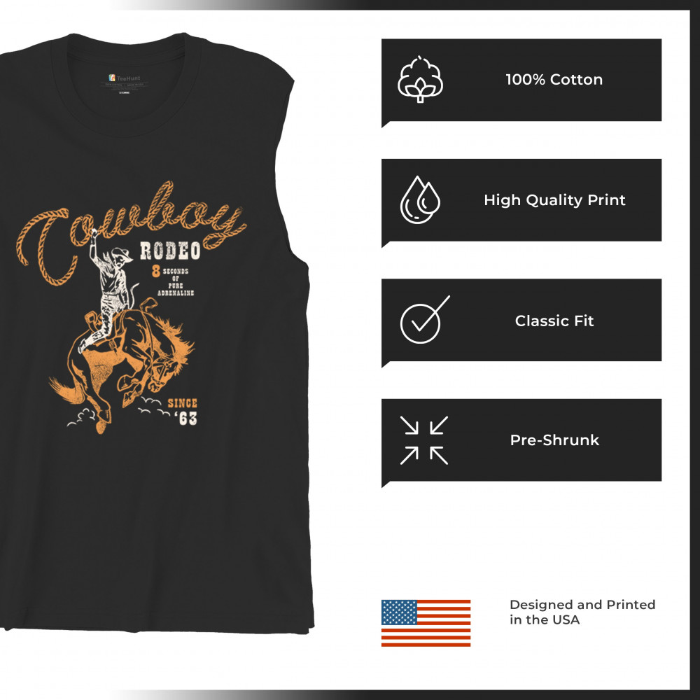 Cowboy bull riding design for rodeo fans and western lovers. Celebrates 8 seconds of adrenaline, cowboy grit, and rodeo tradition.