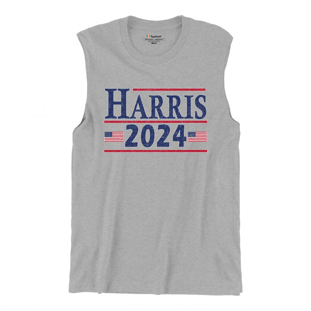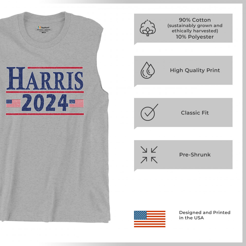 Show your support for Kamala Harris with this bold "Harris 2024" t-shirt, featuring American flags. Perfect for rallies and events. Join the movement today!