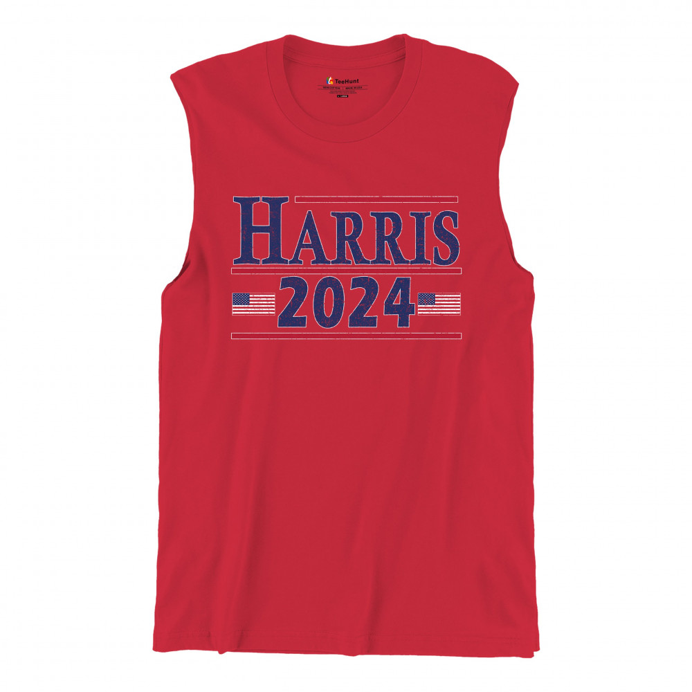 Show your support for Kamala Harris with this bold "Harris 2024" t-shirt, featuring American flags. Perfect for rallies and events. Join the movement today!