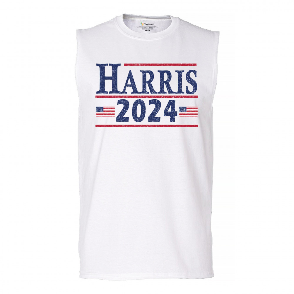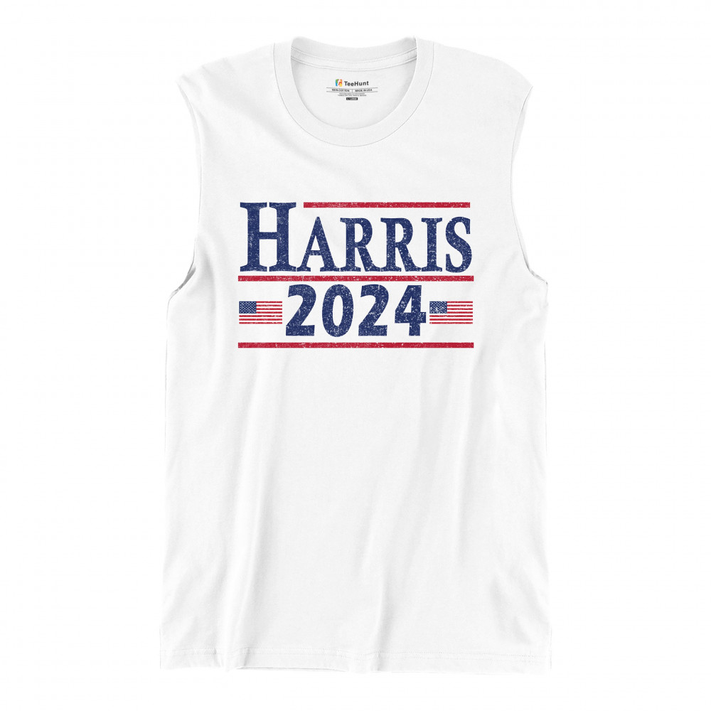 Show your support for Kamala Harris with this bold "Harris 2024" t-shirt, featuring American flags. Perfect for rallies and events. Join the movement today!