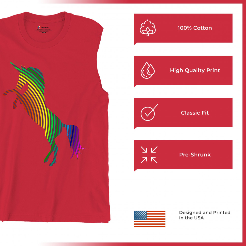VIVID RAINBOW-STRIPE REARING muscle shirt lgbtq+ queer gay pride men's red
