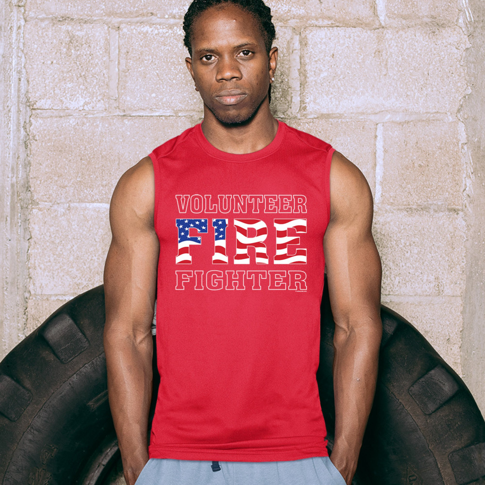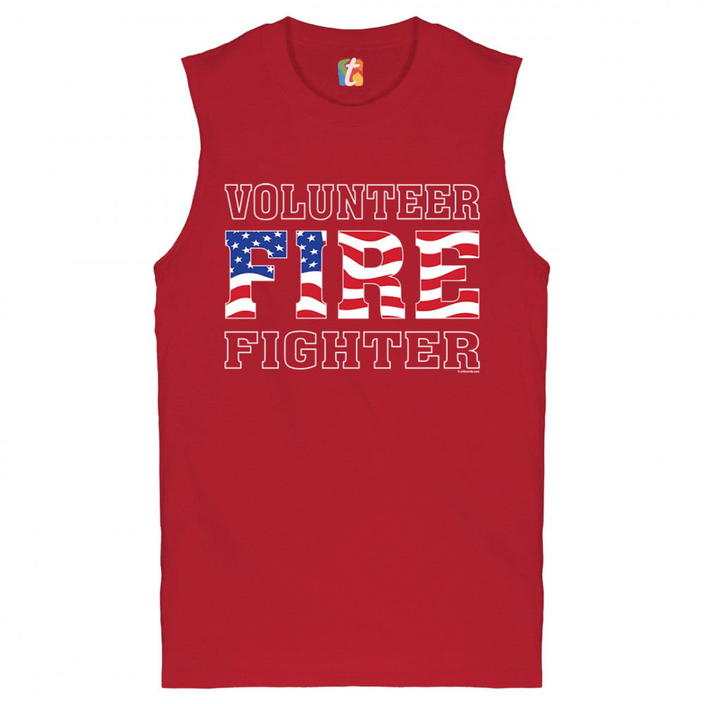 VOLUNTEER FIRE FIGHTER muscle shirt fire and rescue courage patriotic men's red
