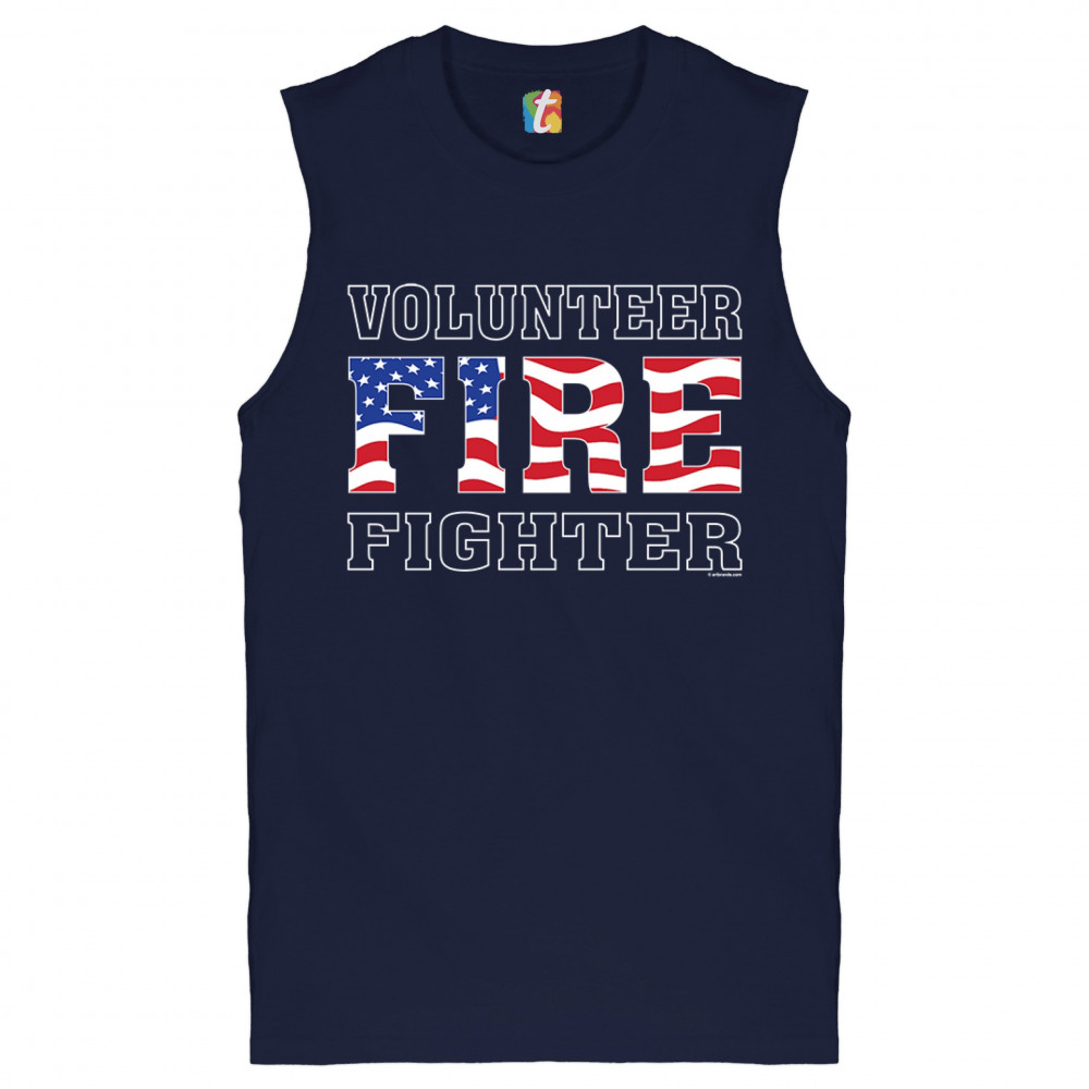 VOLUNTEER FIRE FIGHTER muscle shirt fire and rescue courage patriotic men's navy blue