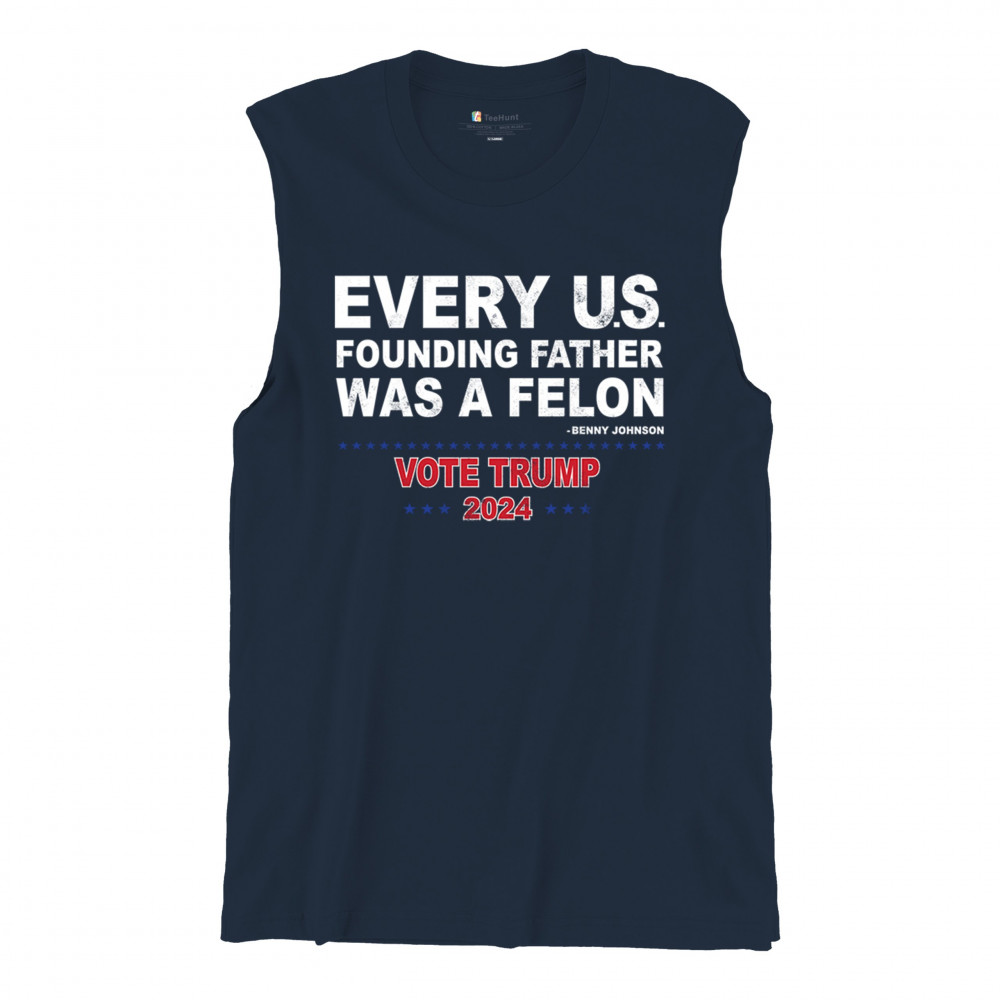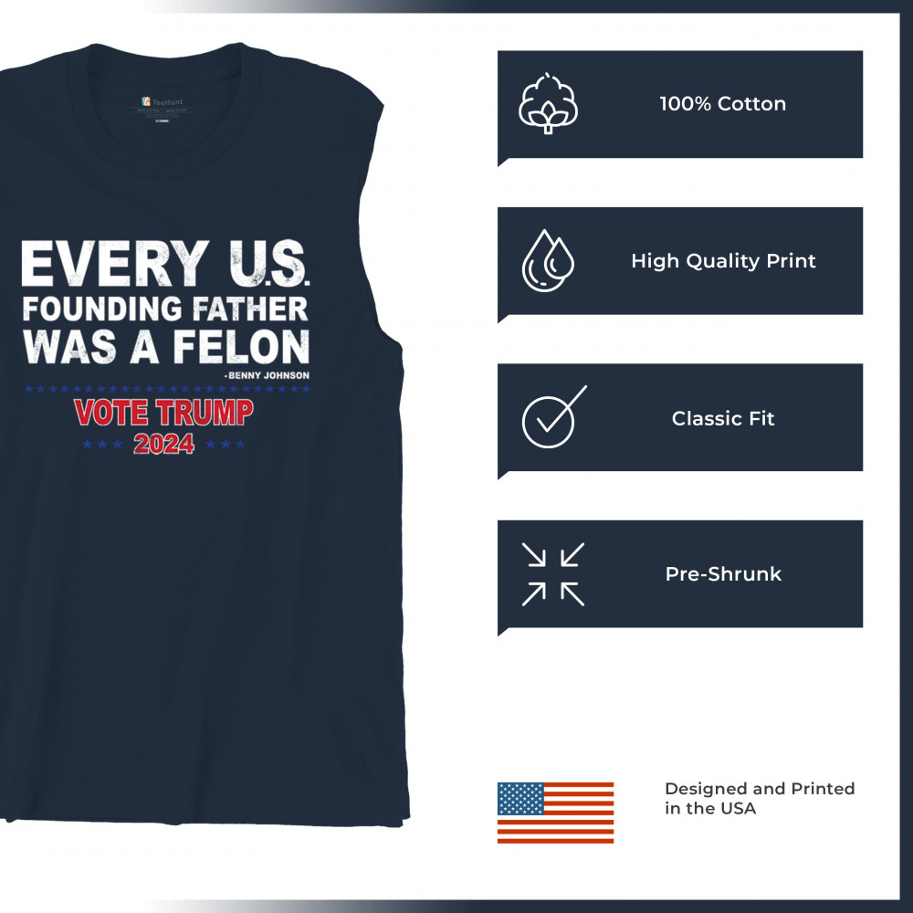 Show your support for Trump 2024 with a bold design quoting "Every U.S. founding father was a felon." Stand against political attacks and support an America-first vision.