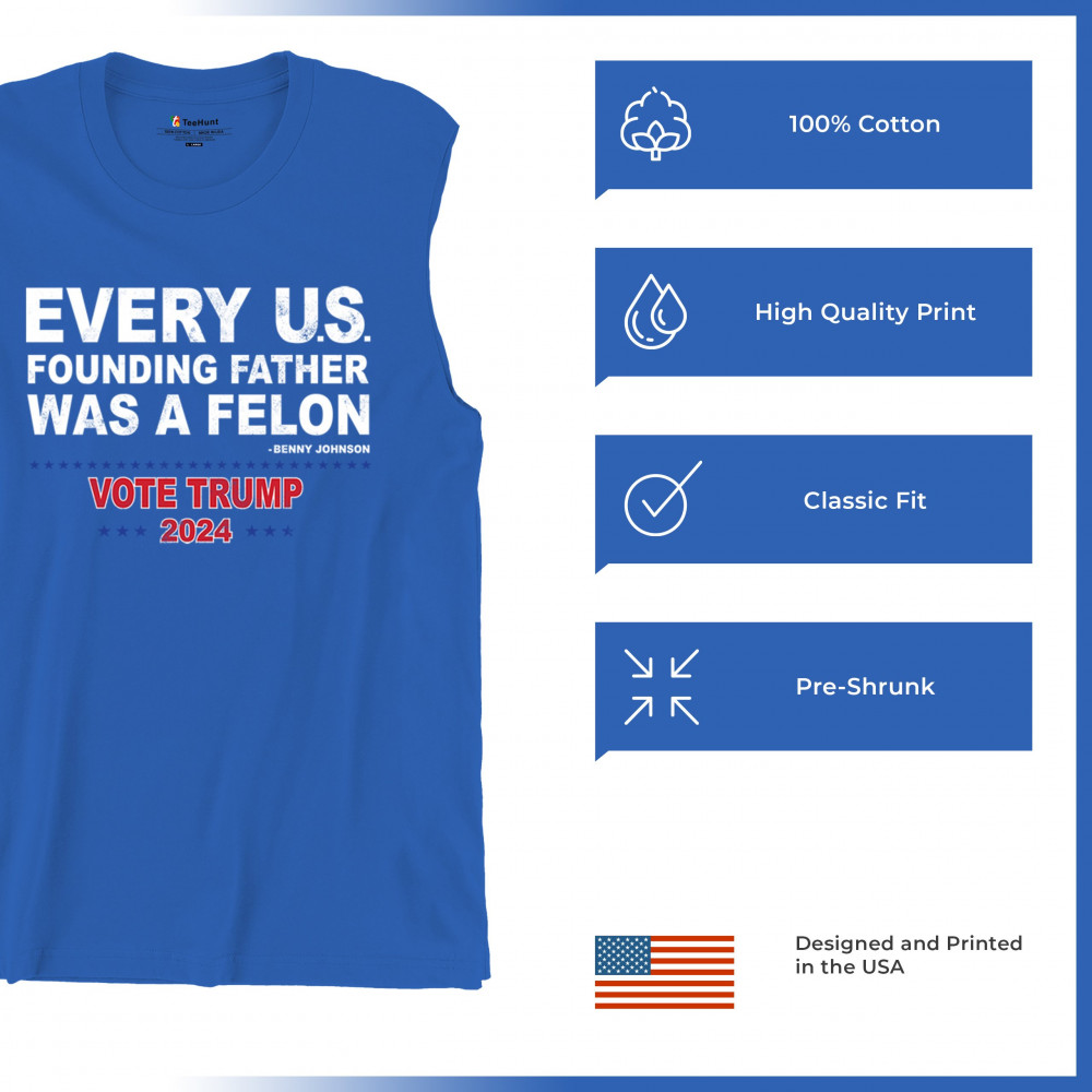 Show your support for Trump 2024 with a bold design quoting "Every U.S. founding father was a felon." Stand against political attacks and support an America-first vision.