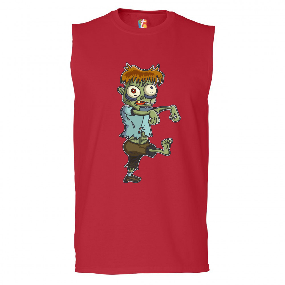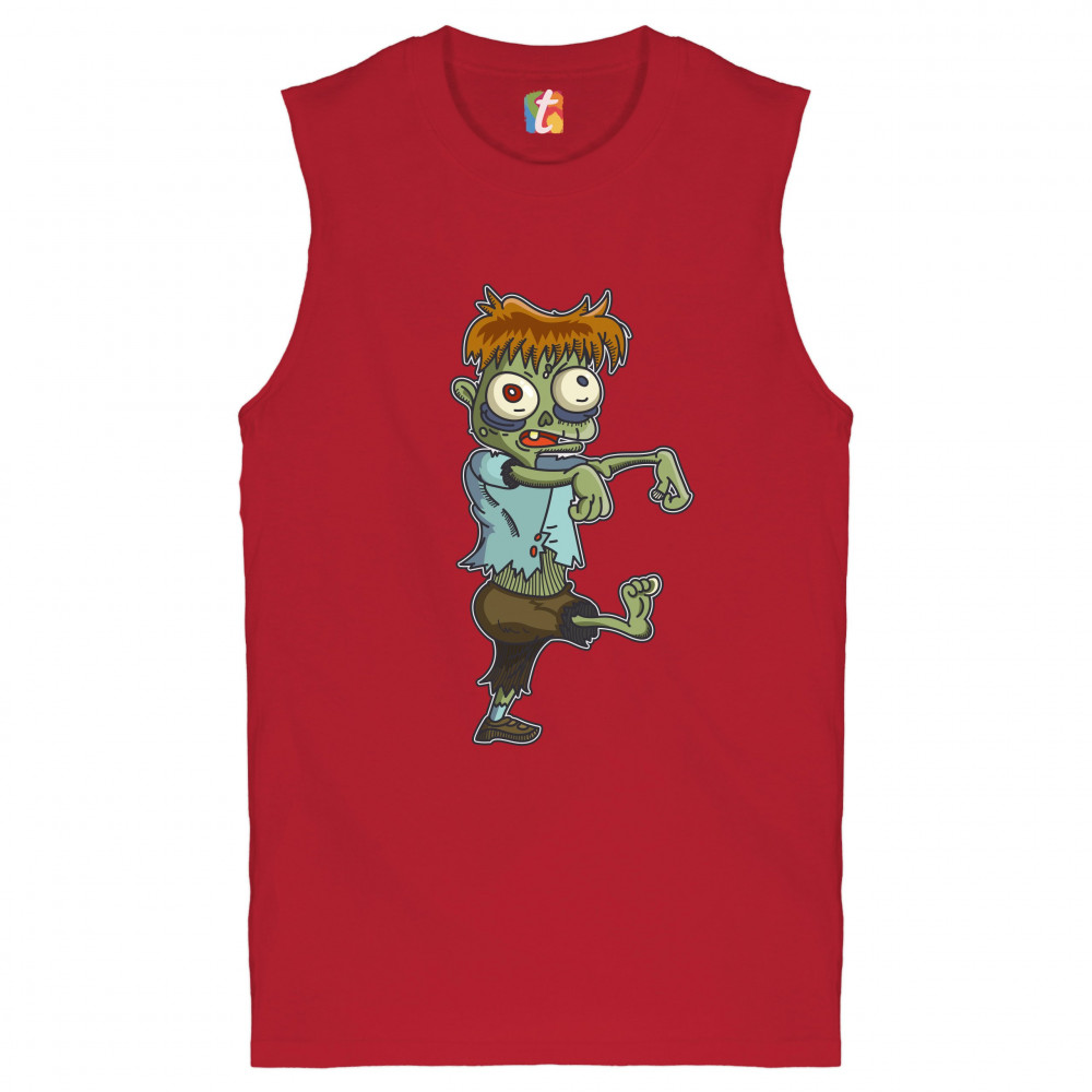 A print featuring a zombie, walking in a stereotypical movie fashion with the arms extended forward. The zombie has messy ginger hair and eyes popping out but he looks rather funny and non-threatening. A great choice for a person who is into horror movies