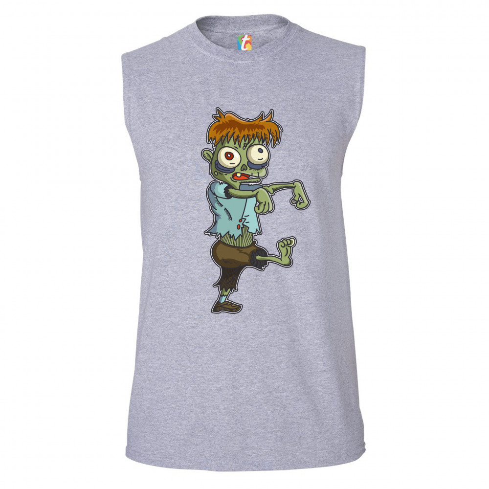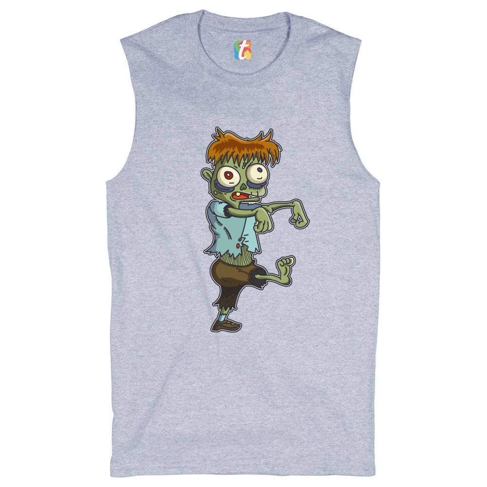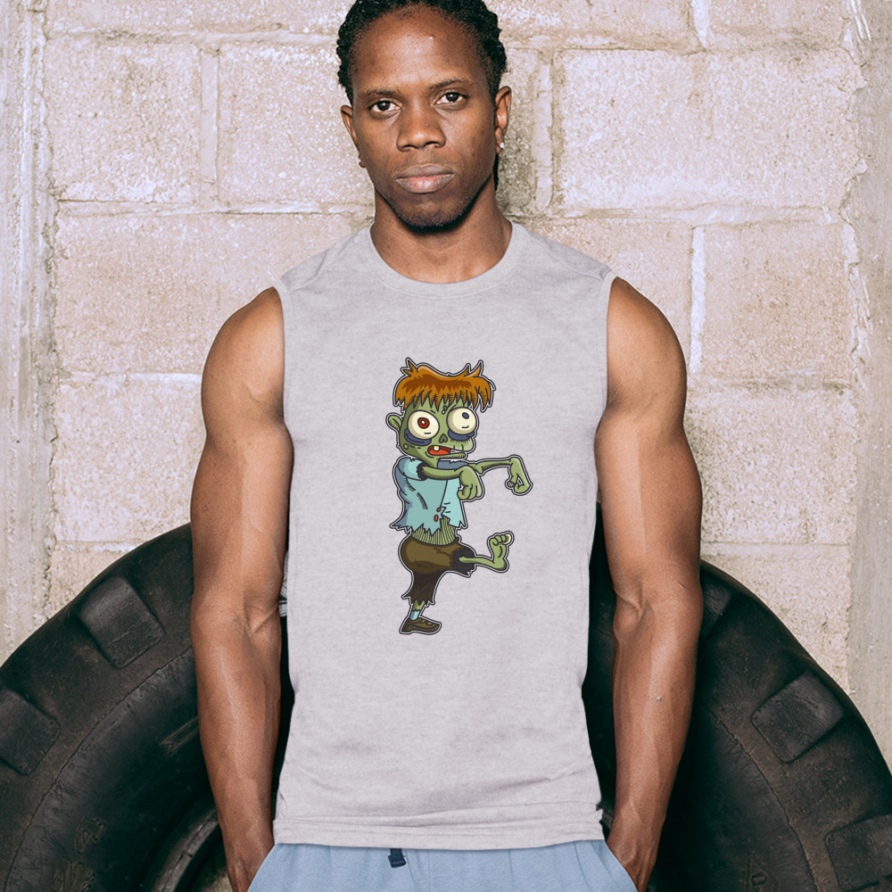 A print featuring a zombie, walking in a stereotypical movie fashion with the arms extended forward. The zombie has messy ginger hair and eyes popping out but he looks rather funny and non-threatening. A great choice for a person who is into horror movies