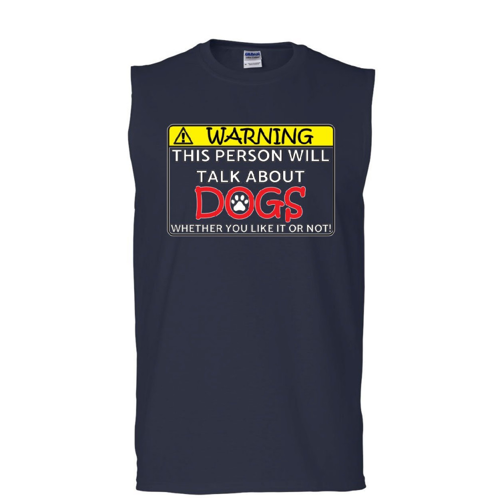 WARNING! THIS PERSON WILL TALK ABOUT DOGS muscle shirt puppy pet paw sleeveless navy blue