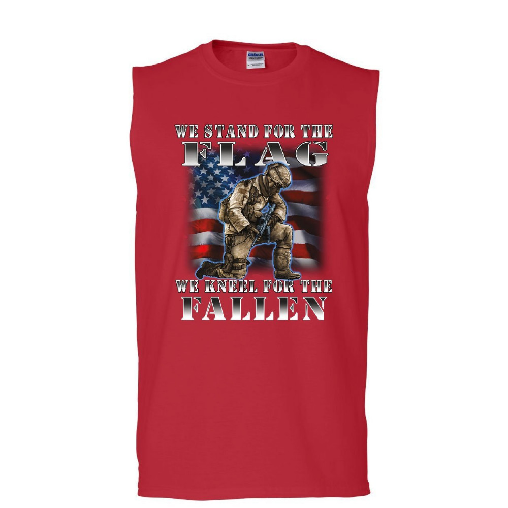 WE STAND FOR THE FLAG muscle shirt veteran military pow mia army navy sleeveless red