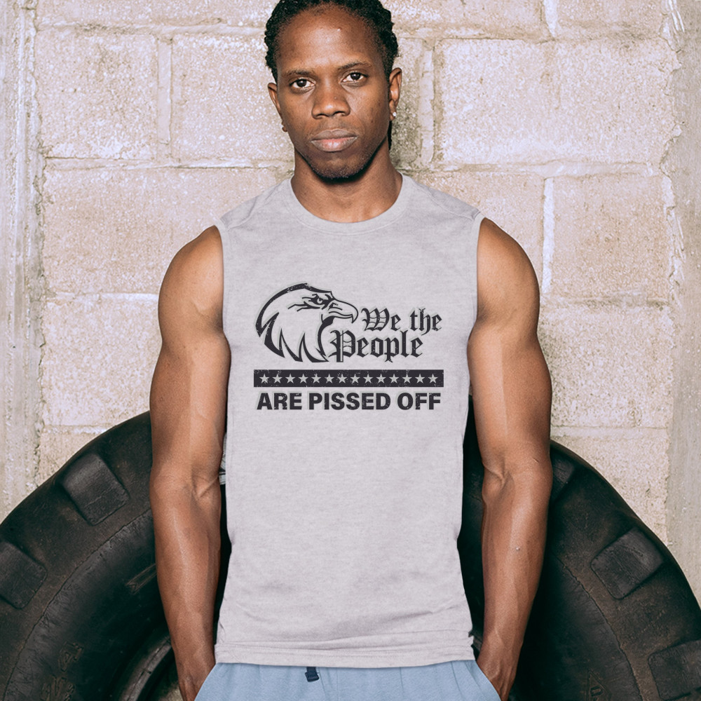 WE THE PEOPLE ARE PISSED OFF muscle shirt bald eagle fight for democracy men's gray
