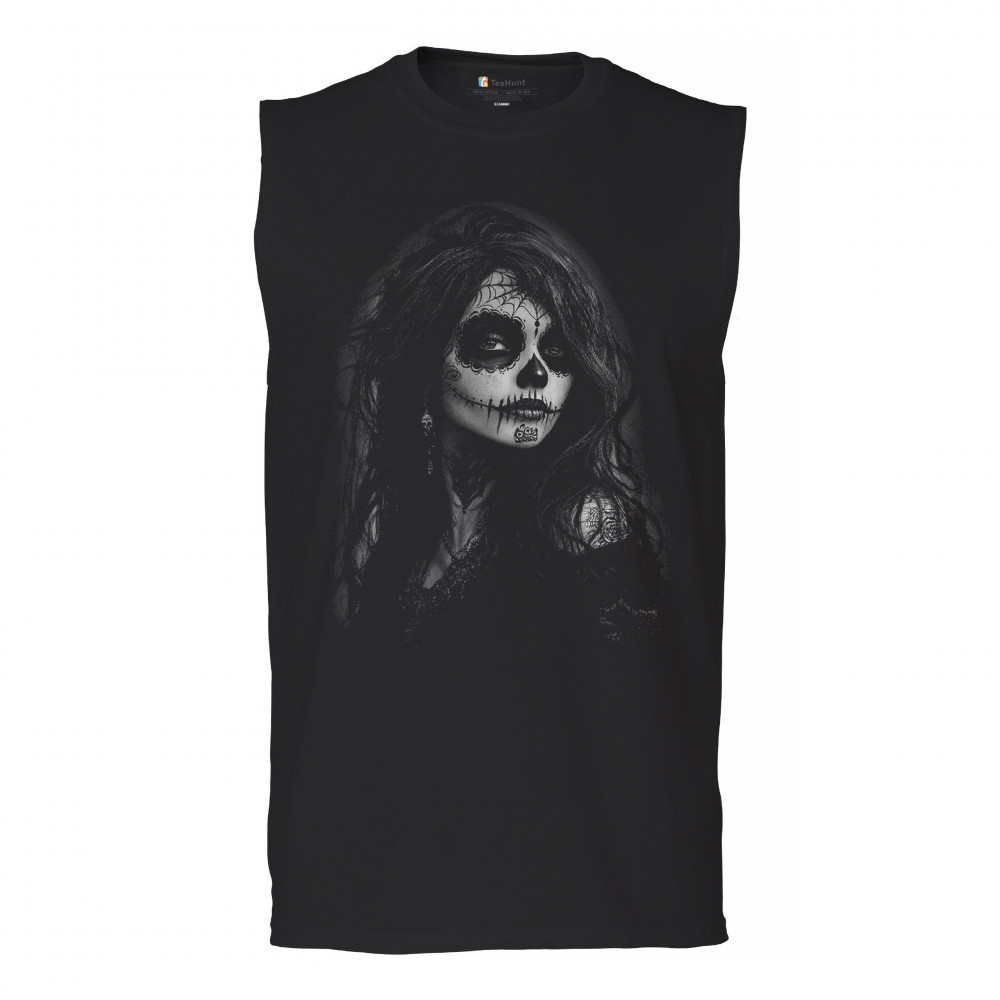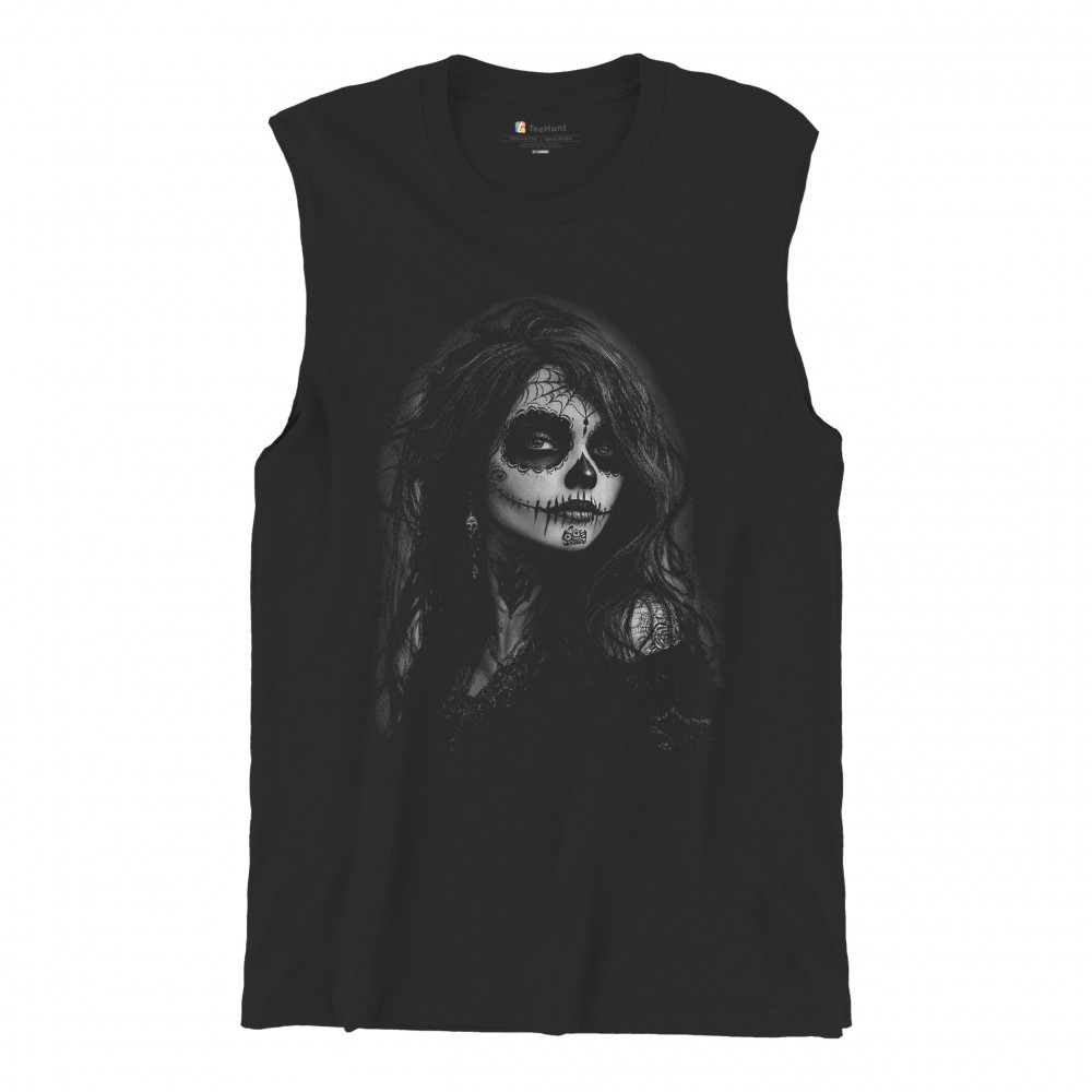 Darkly captivating and fierce, this sugar skull design features a gothic woman with intricate makeup, spiderweb crown, black lace, and flowing hair. A perfect blend of DÃa de los Muertos tradition, gothic fashion, and tattoo-style elegance. Ideal for Halloween, alt aesthetics, and lovers of haunting beauty.
