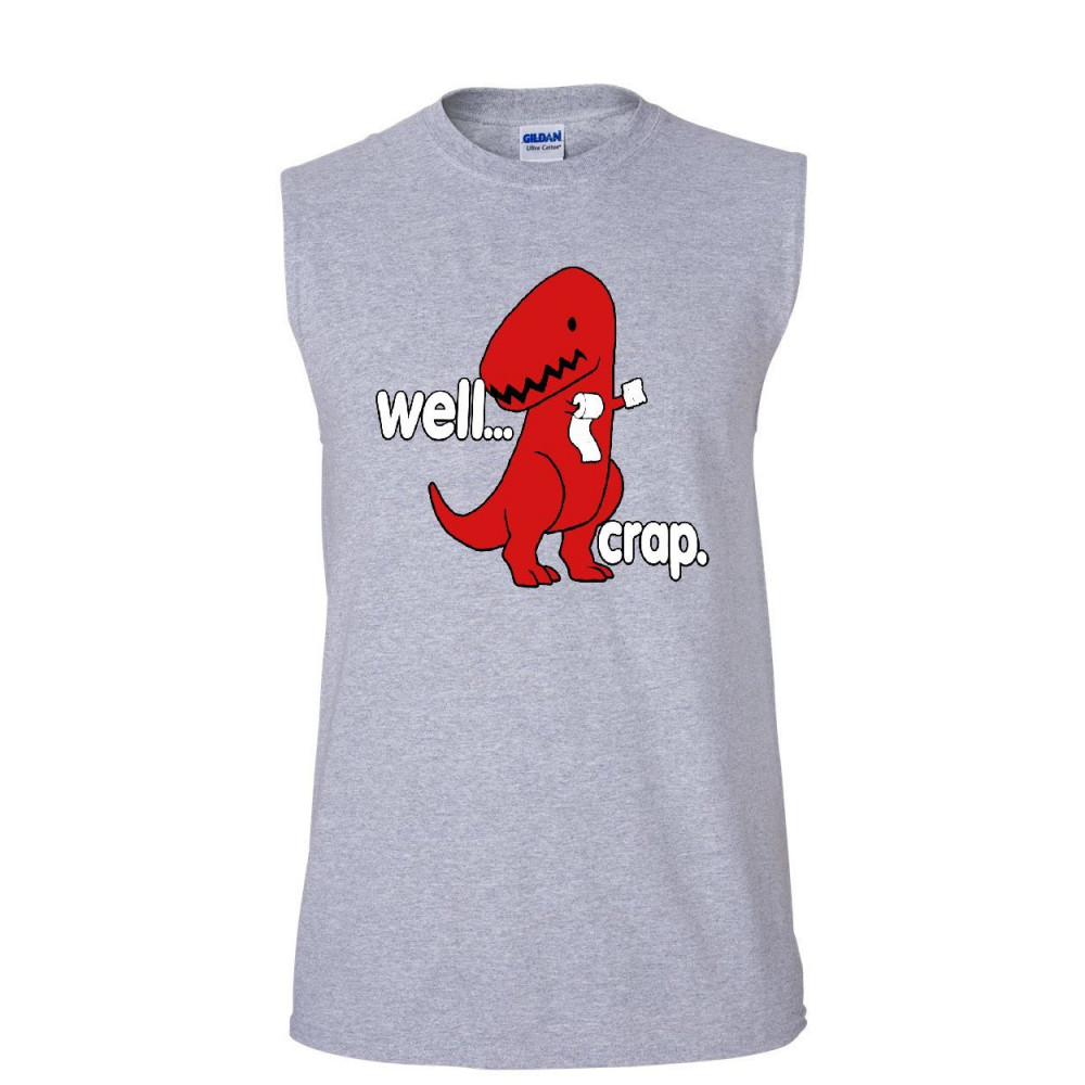 WELL CRAP T-REX well crap muscle shirt funny t-rex fail short hands tyrannosaurus sleeveless gray