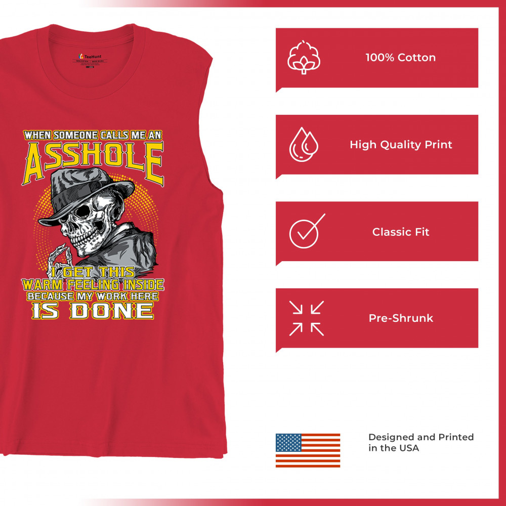 This badass design features a smirking skull in a fedora with a cigarette, backed by the line: “When someone calls me an asshole... my work here is done.†Built for dark humor fans, skull art lovers, and those who live life with sharp wit and zero regrets. Ideal for biker rallies, sarcasm nights, or anyone owning their attitude with pride.
