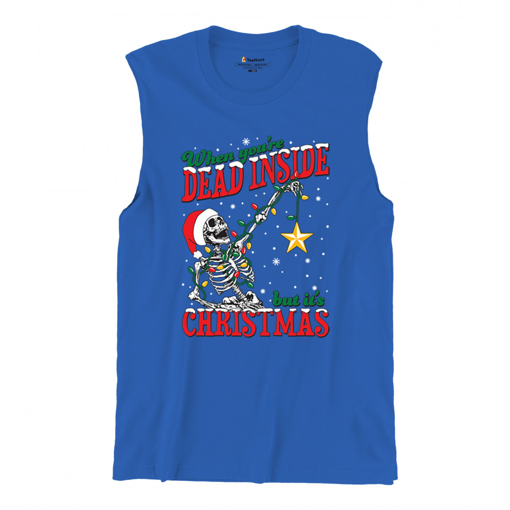 Celebrate humor and holiday spirit with the "When You're Dead Inside But It's Christmas" skeleton design. Perfect for parties and unique gifts.