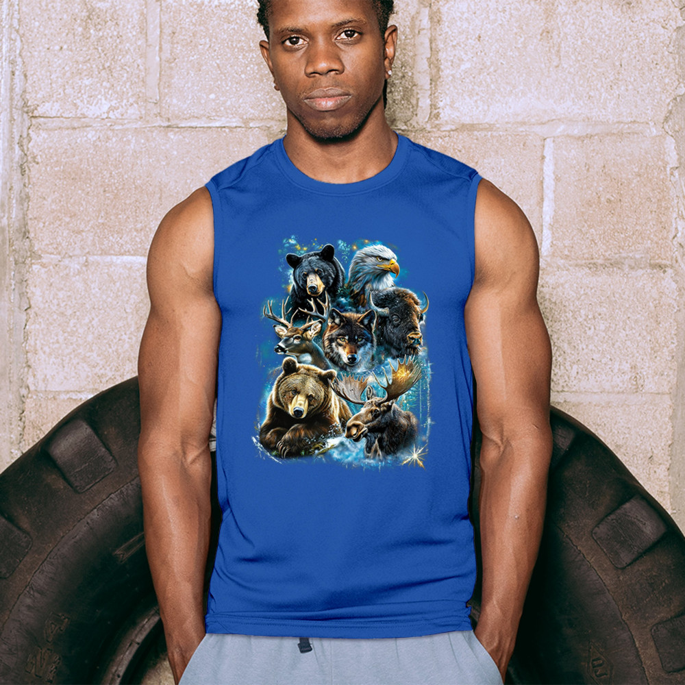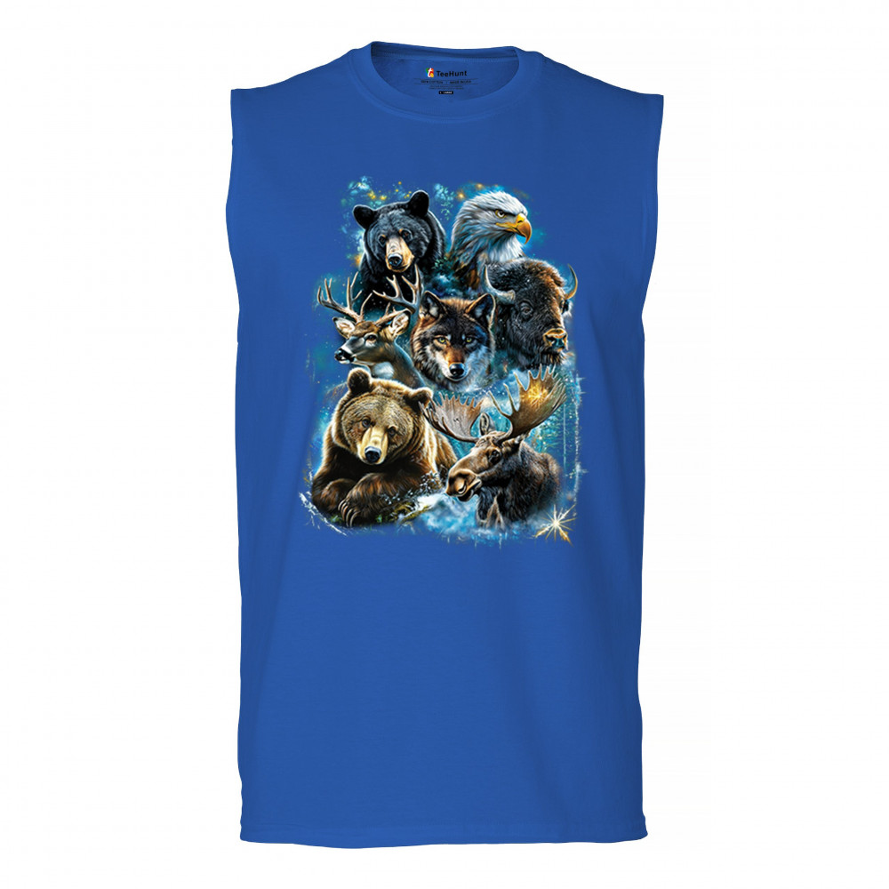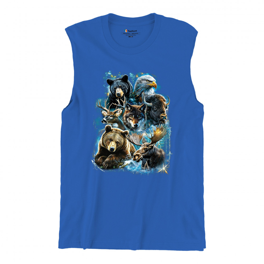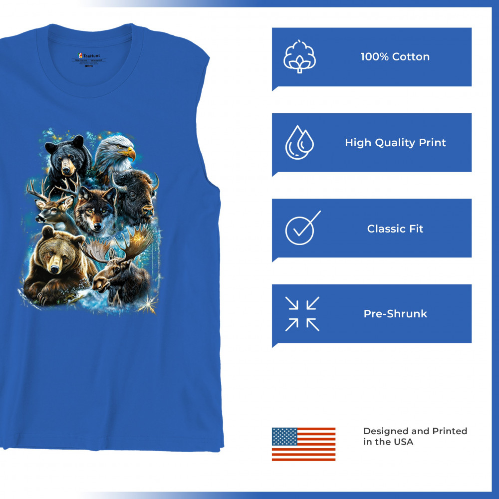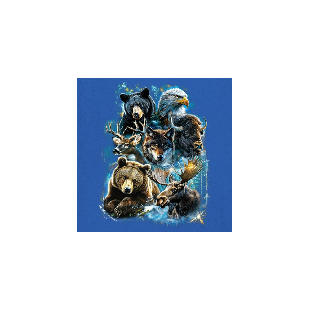Wilderness design with moose, bear, eagle, bison, and wolf. A bold tribute to forest animals, nature strength, and rugged outdoor spirit.