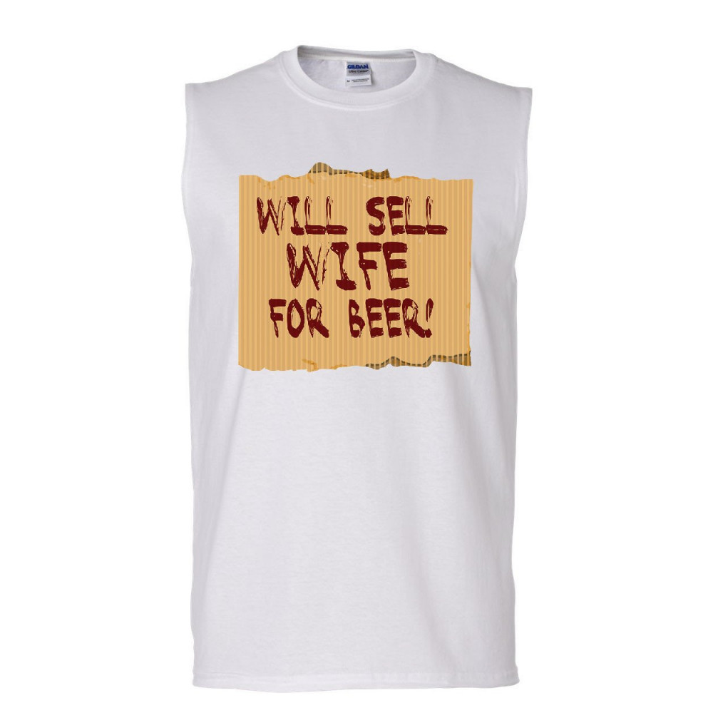 WILL SELL WIFE FOR BEER muscle shirt funny drinking white