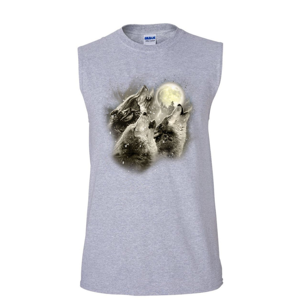 WOLF HOWL muscle shirt wild wolf pack predator animals nature moon sleeveless gray