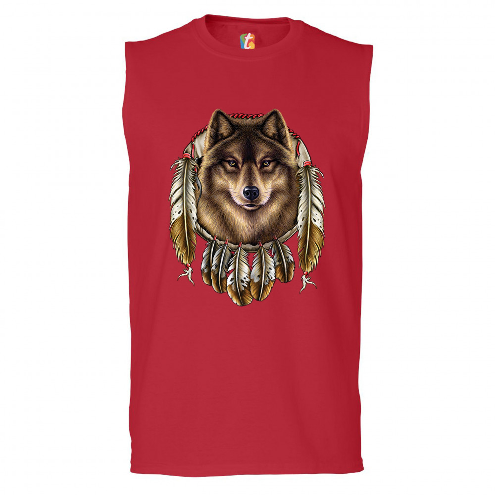 WOLF SPIRIT muscle shirt native american dreamcatcher indigenous men's red
