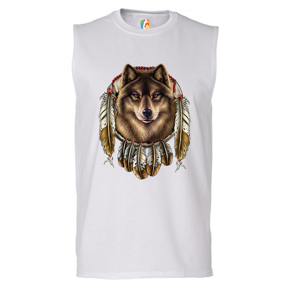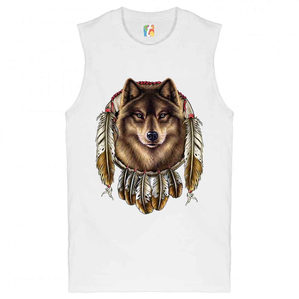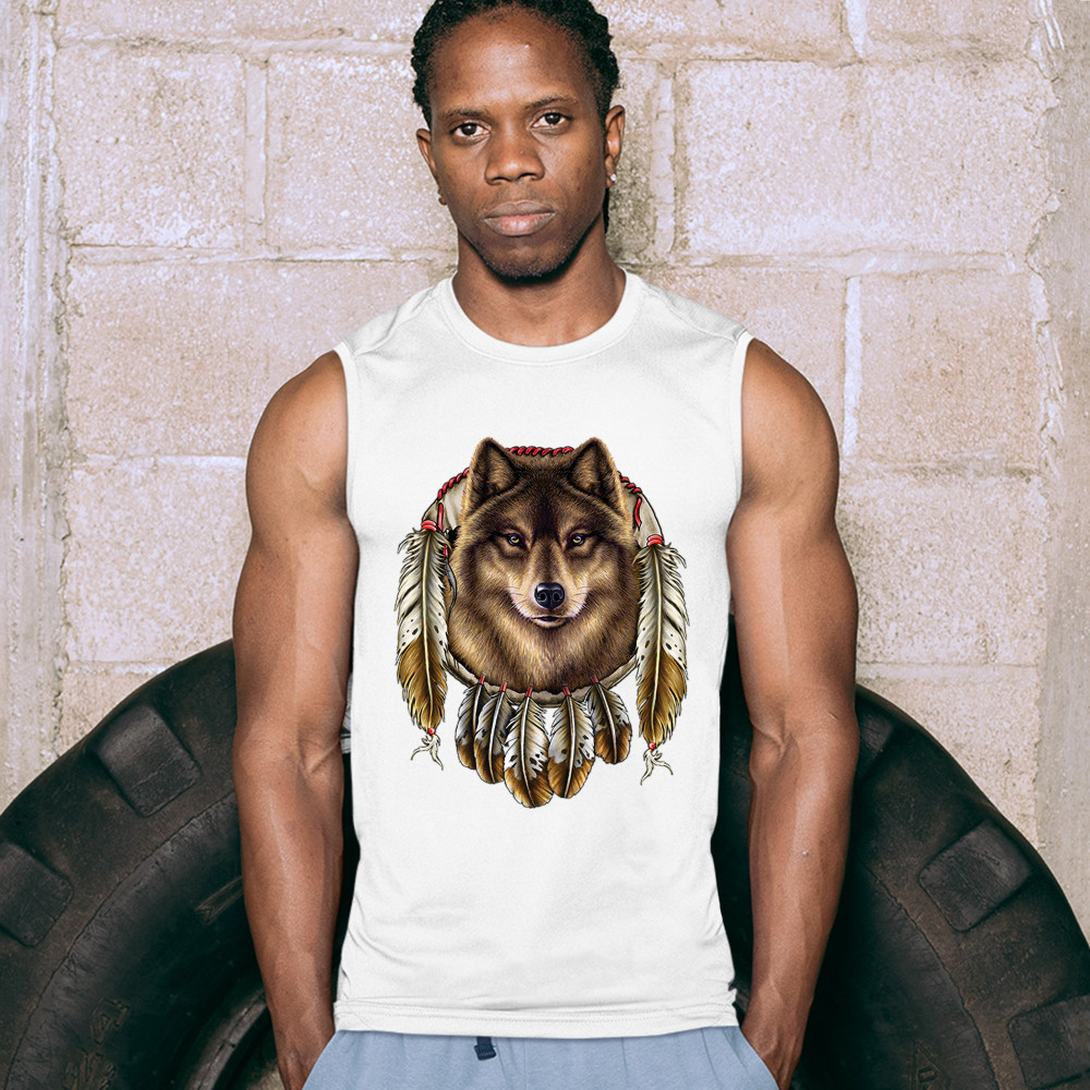 WOLF SPIRIT muscle shirt native american dreamcatcher indigenous men's white