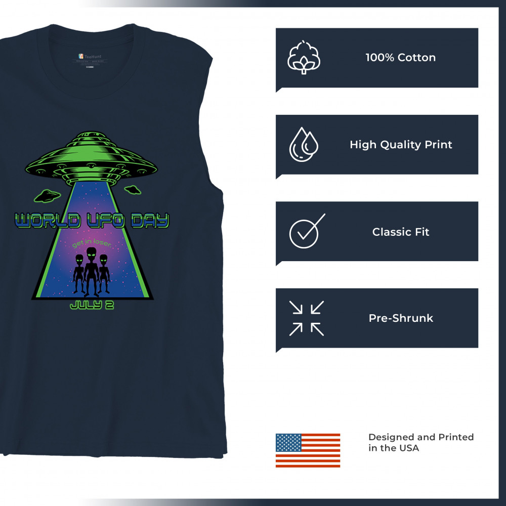Join the celebration of World UFO Day with this unique design, featuring a detailed UFO beaming up three cheerful aliens with the phrase "Get in, loser." Perfect for those who are fascinated by the unknown and have a sense of humor about extraterrestrial life. Whether you're attending a UFO event, meeting with fellow enthusiasts, or just want to express your quirky style, this design is a must-have. Embrace the spirit of curiosity and fun with this eye-catching design for July 2nd.
