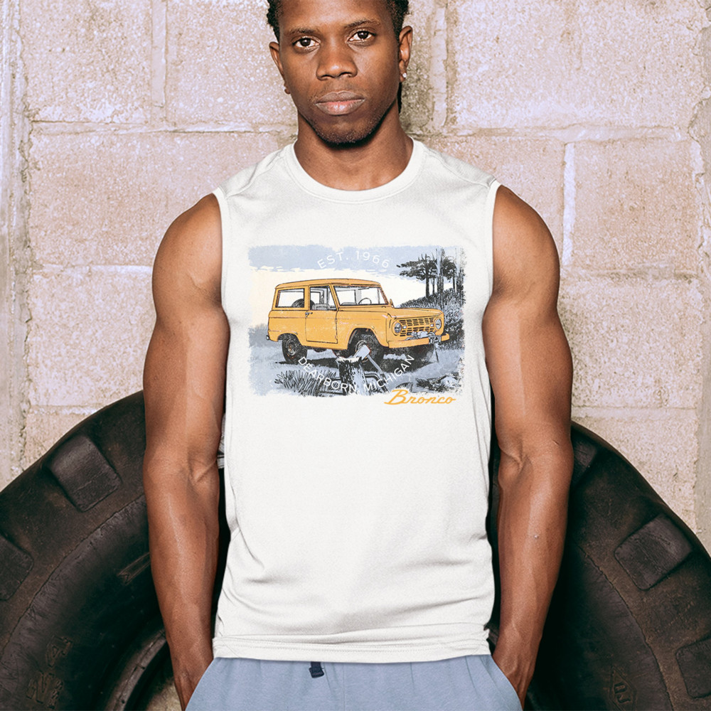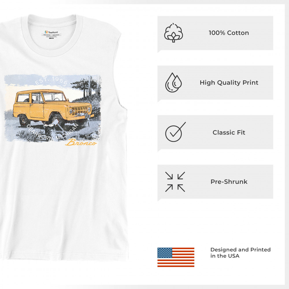 Celebrate the iconic Ford Bronco with this classic car apparel that embodies the retro Ford design. Featuring the Bronco Since 1966, this artwork is perfect for Ford Bronco enthusiasts, rugged SUV lovers, and off-road adventurers. Whether you're a Ford truck fan, a collector of classic car collectibles, or looking for the ultimate Bronco gift, this timeless design reflects the heart of vintage off-road vehicles and the outdoor explorer lifestyle.