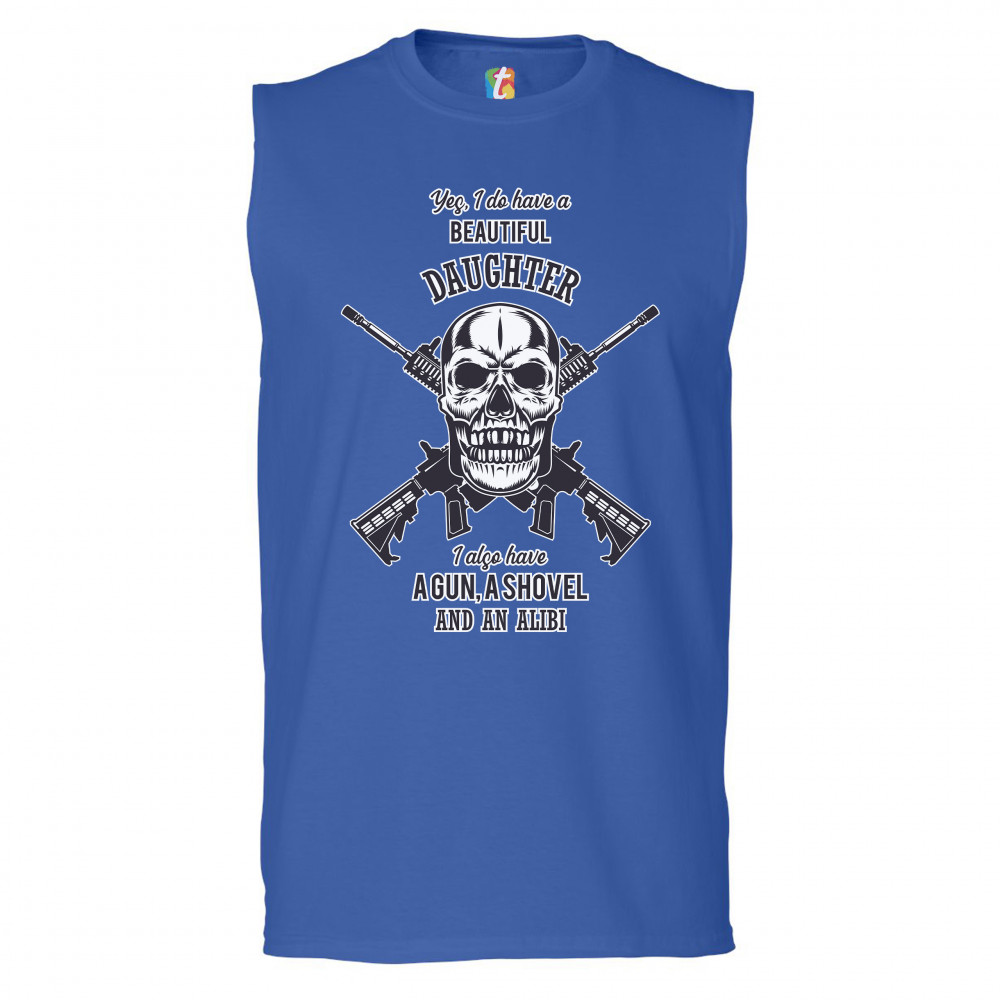 YES I DO HAVE A BEAUTIFUL DAUGHTER muscle shirt father's day fatherhood men's blue