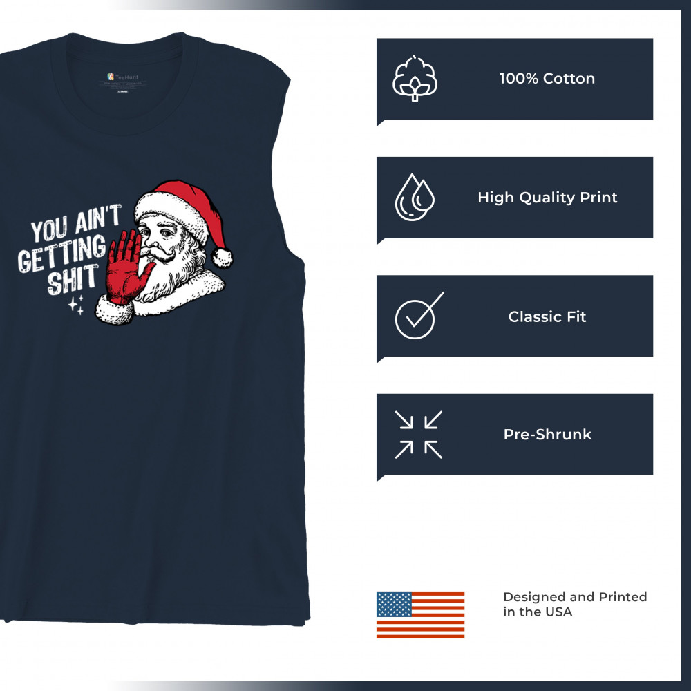 Funny Santa Christmas design with sarcastic Grumpy humor, Merry Xmas parody, Let It Snow style, Jingle Bells laughs, and Christmas tree vibes.
